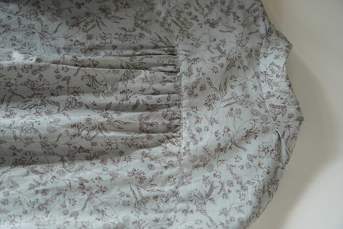 뒷 요크 아랫쪽에 셔링이 잔잔히 잡혀있어