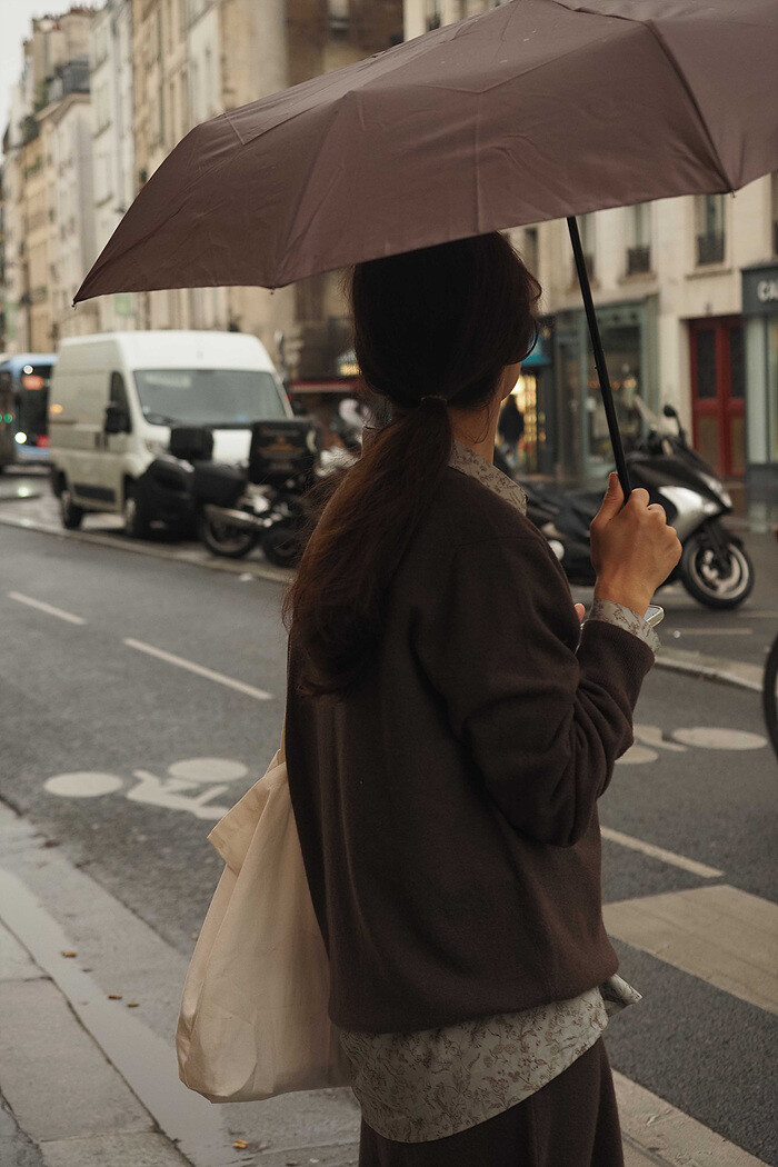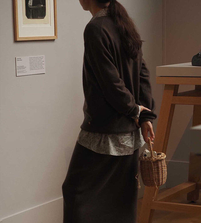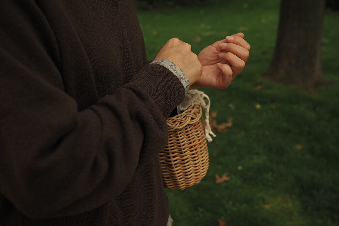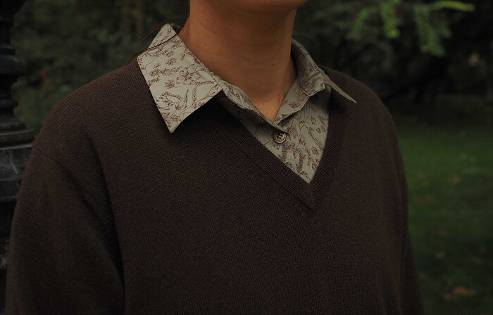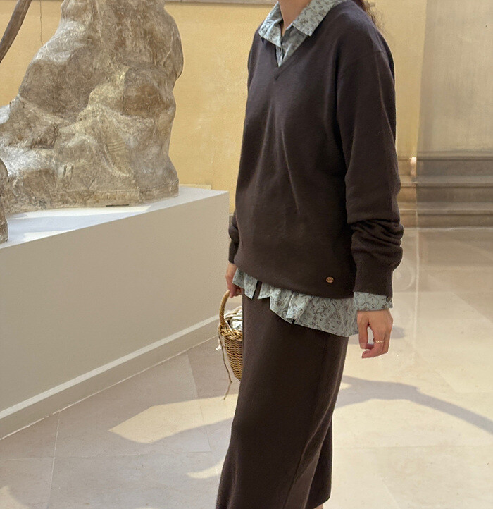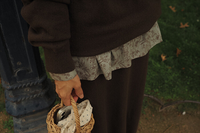 니트 아래 소맷단과 셔츠 밑단이 보이는 것이