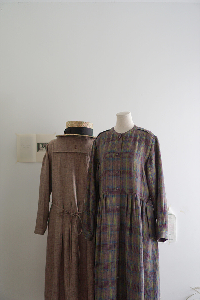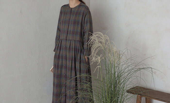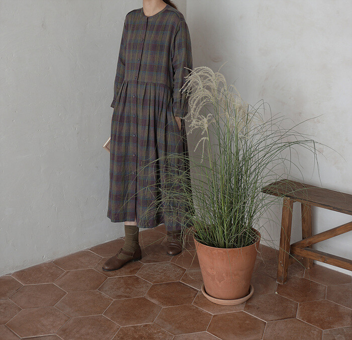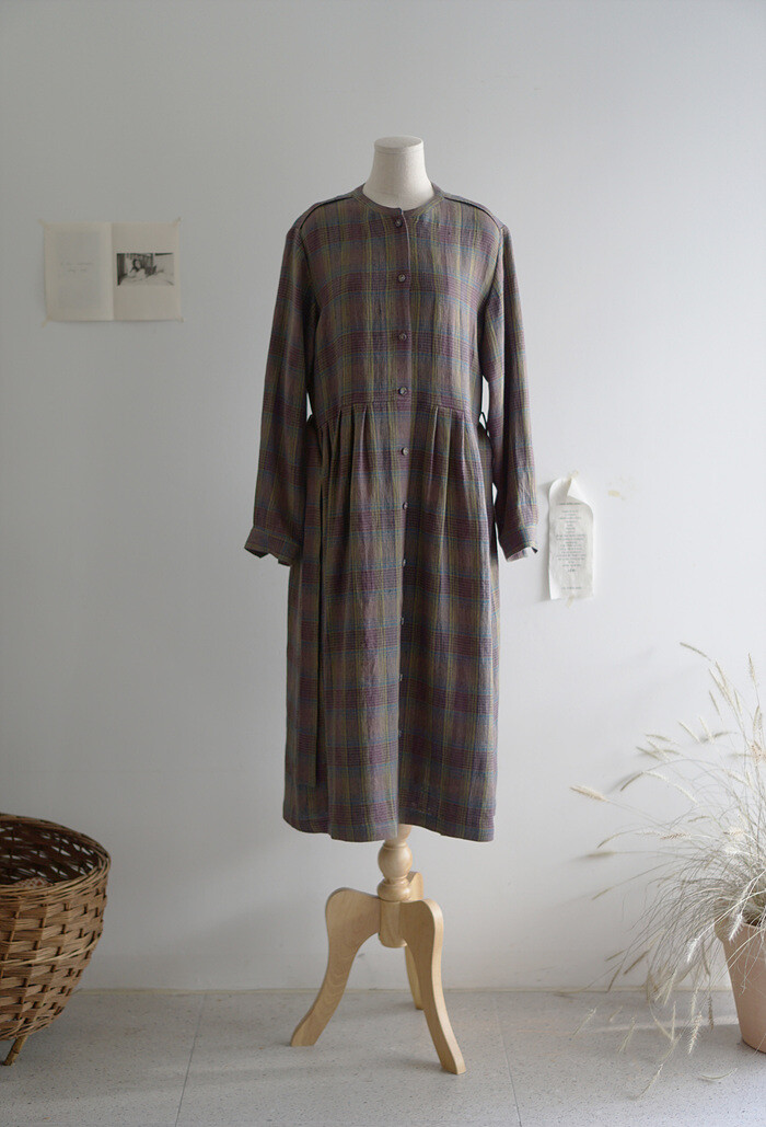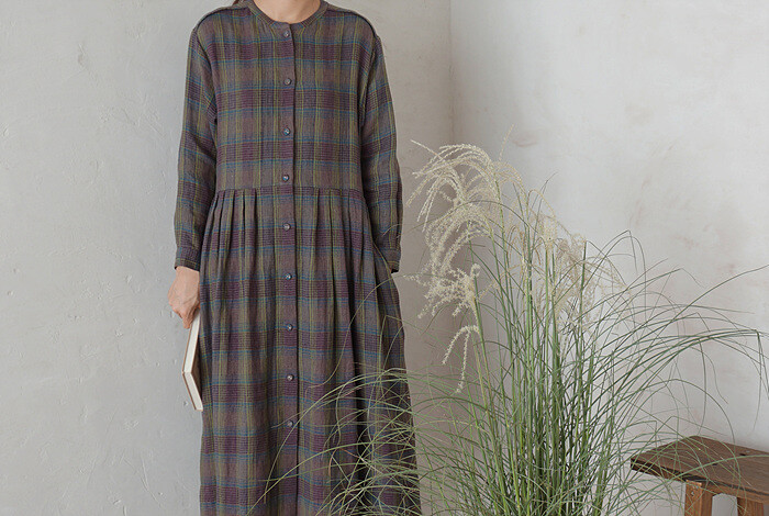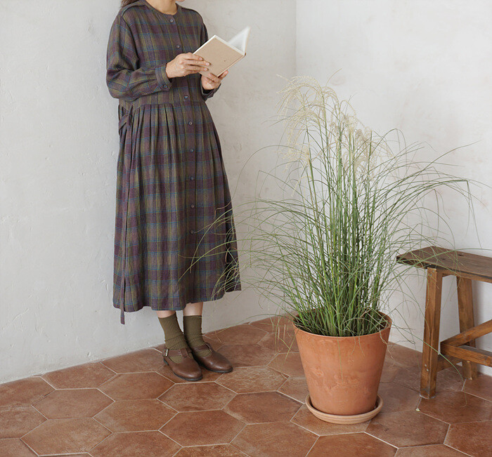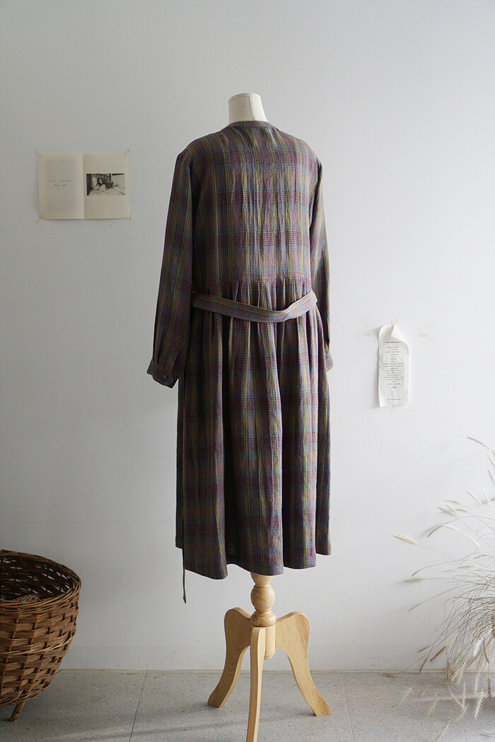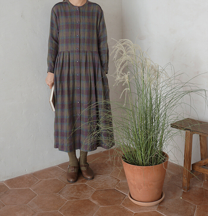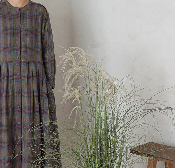[재입고] 모브 체크 원피스 (리투아니아 린넨)
