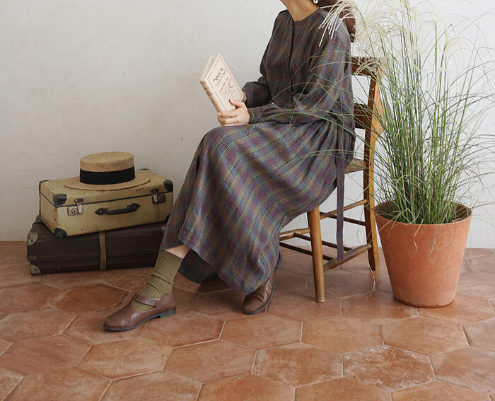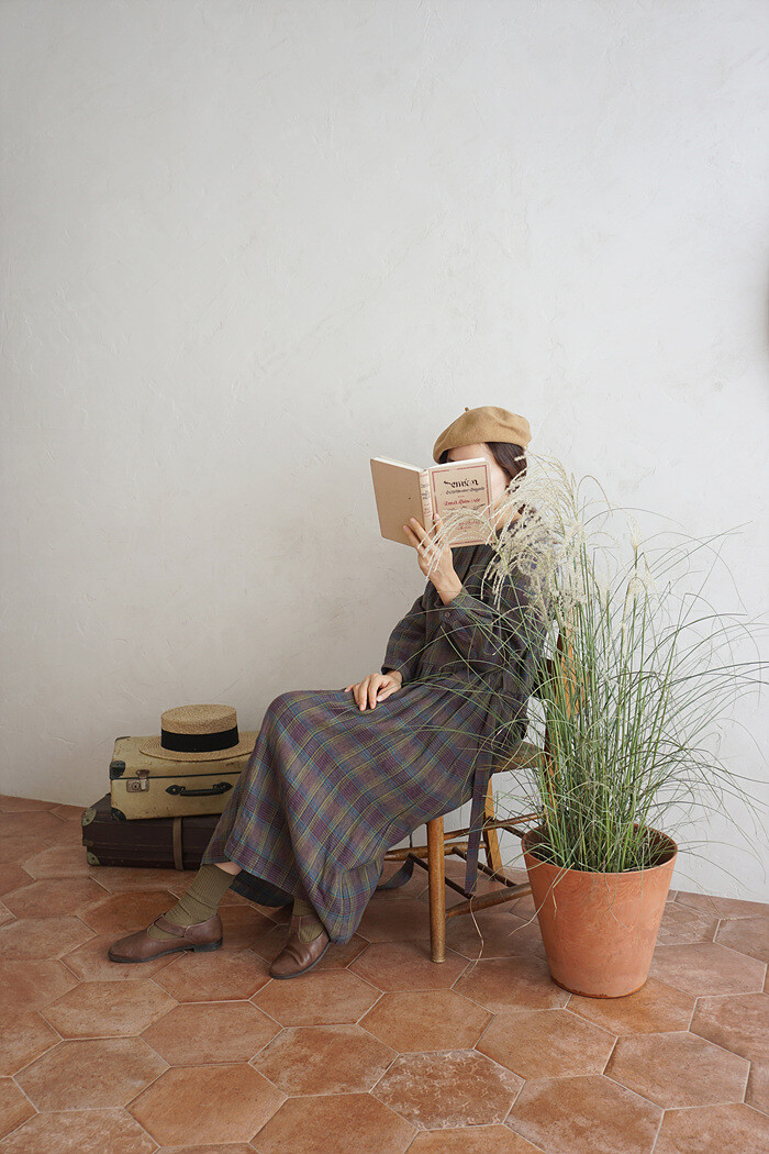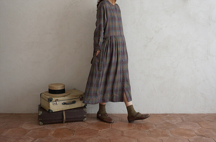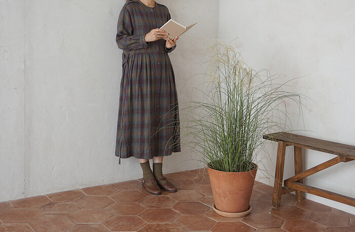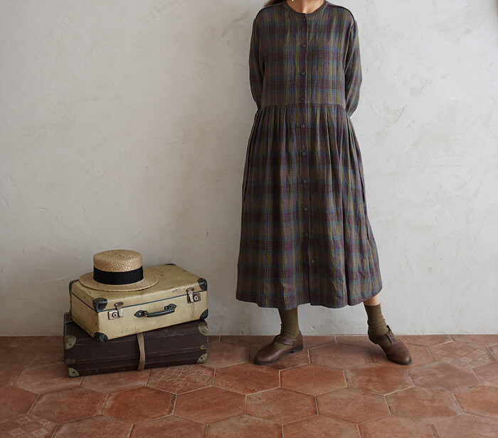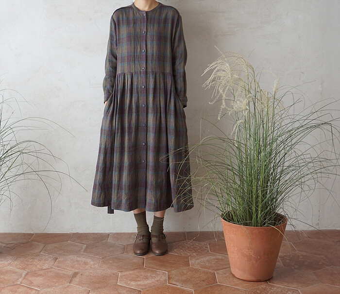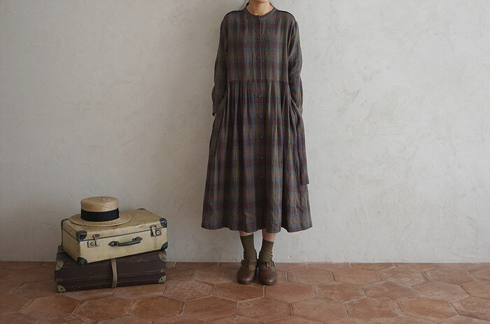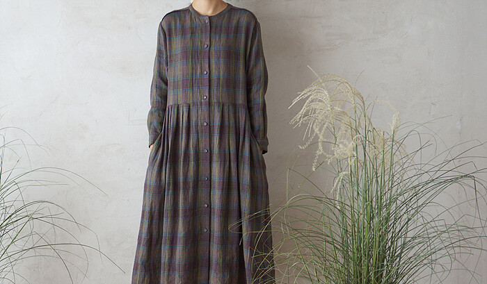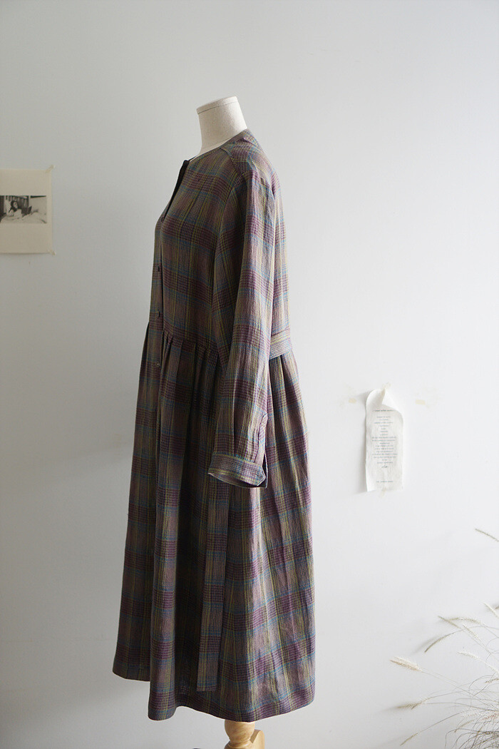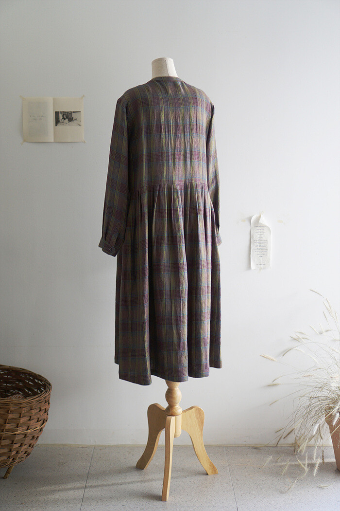 [재입고] 모브 체크 원피스 (리투아니아 린넨)