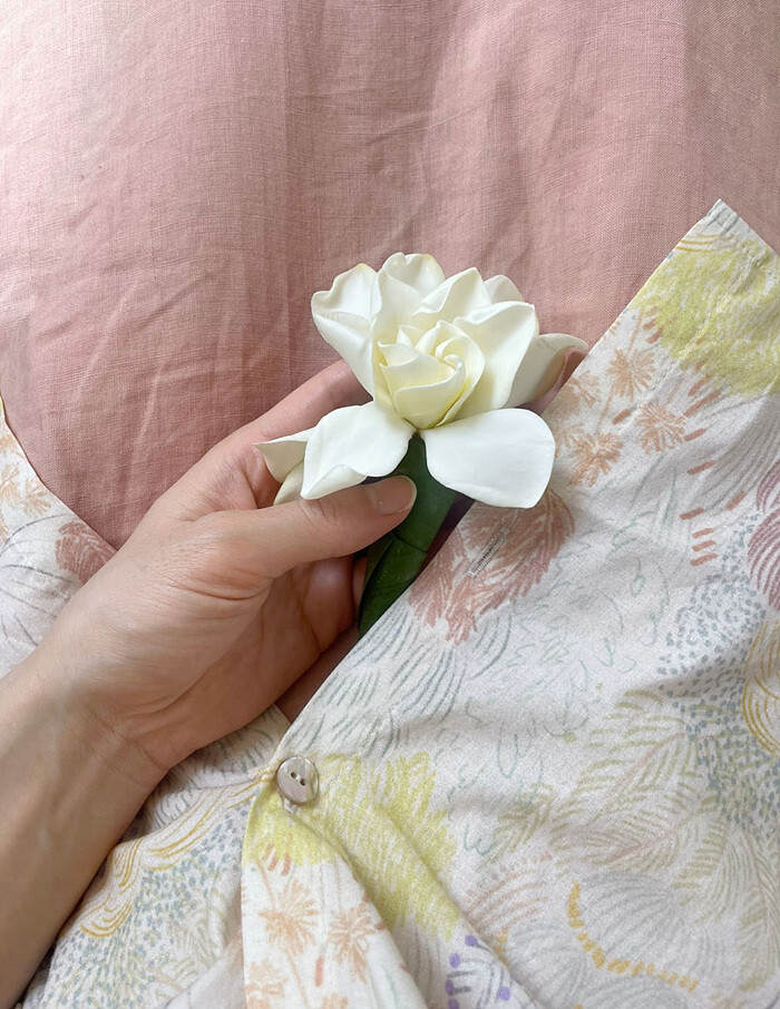 핑브빛 천연소재인 자개 단추를 사용했습니다.
