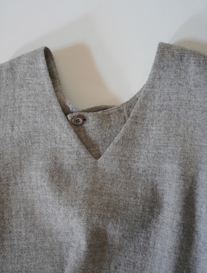 넥깊이는 보트넥 정도이며, 단추로 여밈을 합니다.
