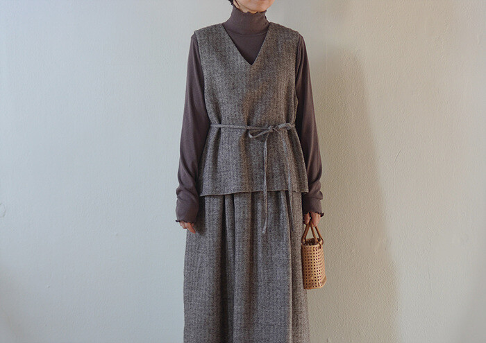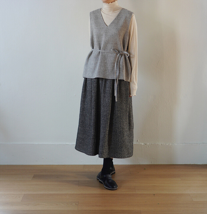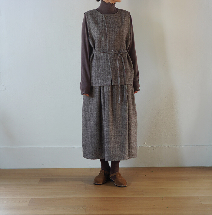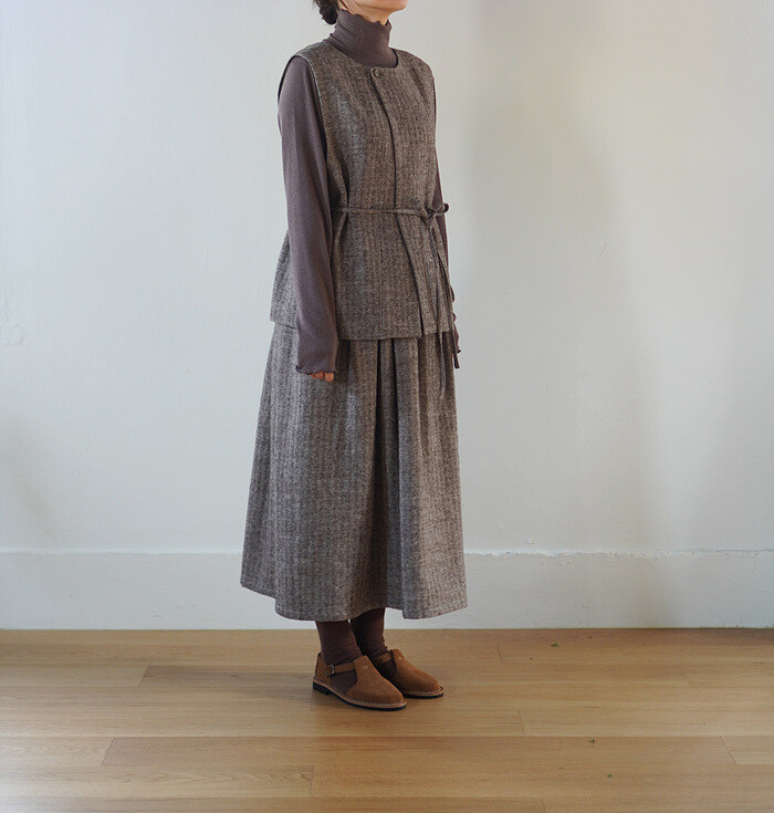두께감이 있는 울 / 린넨 혼방 소재입니다