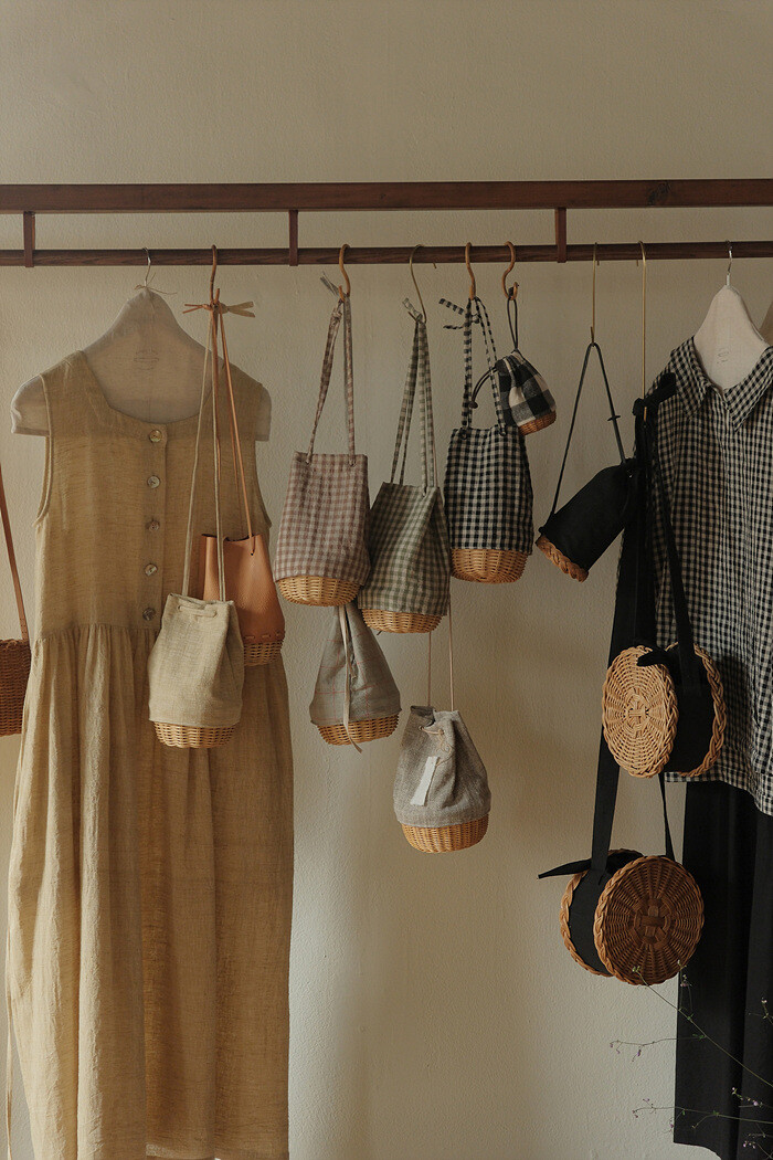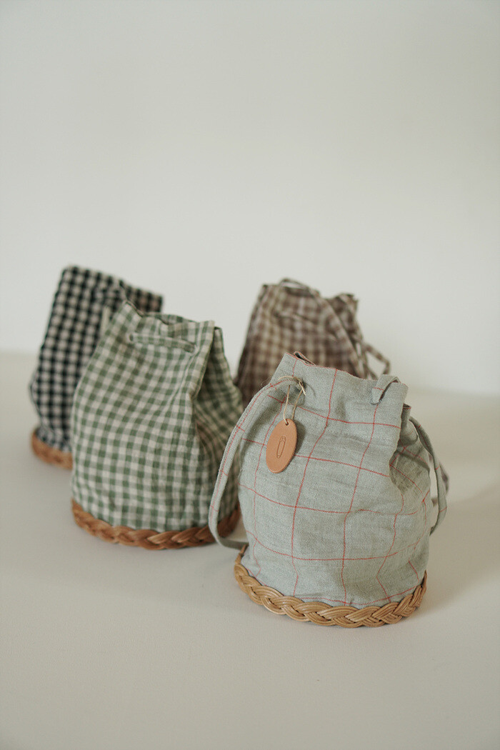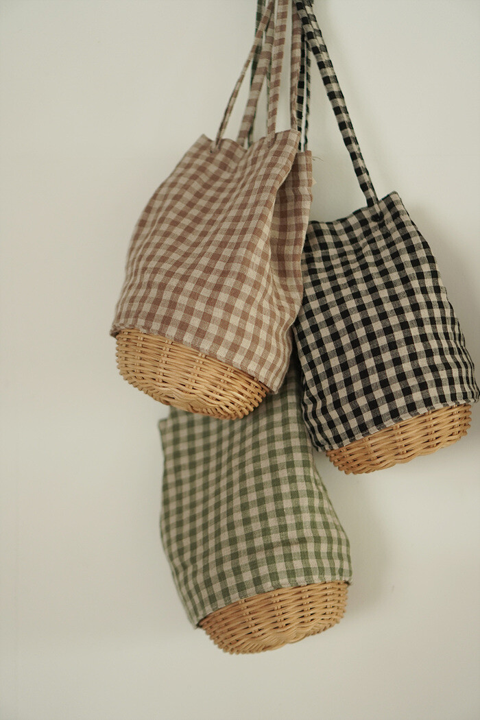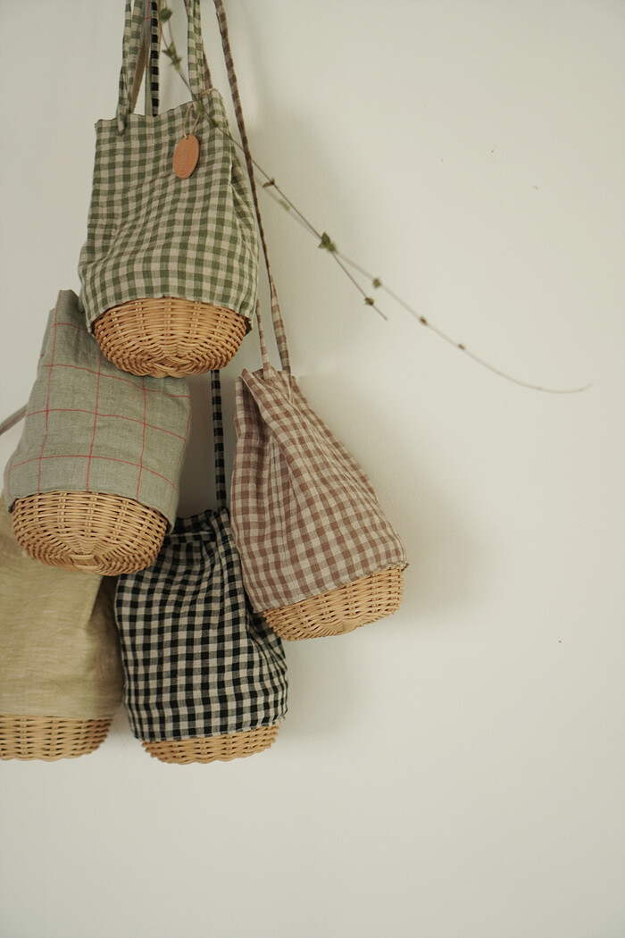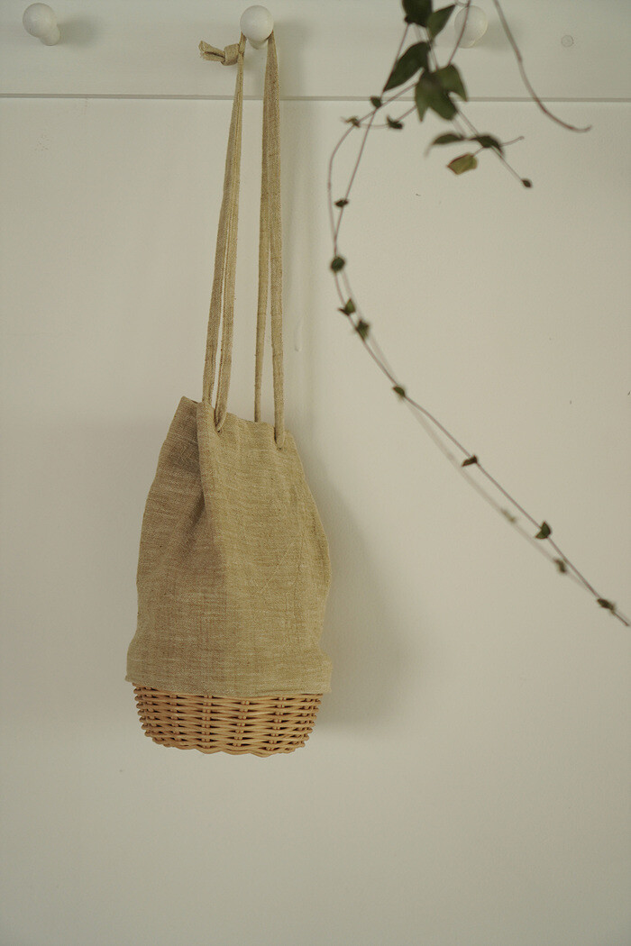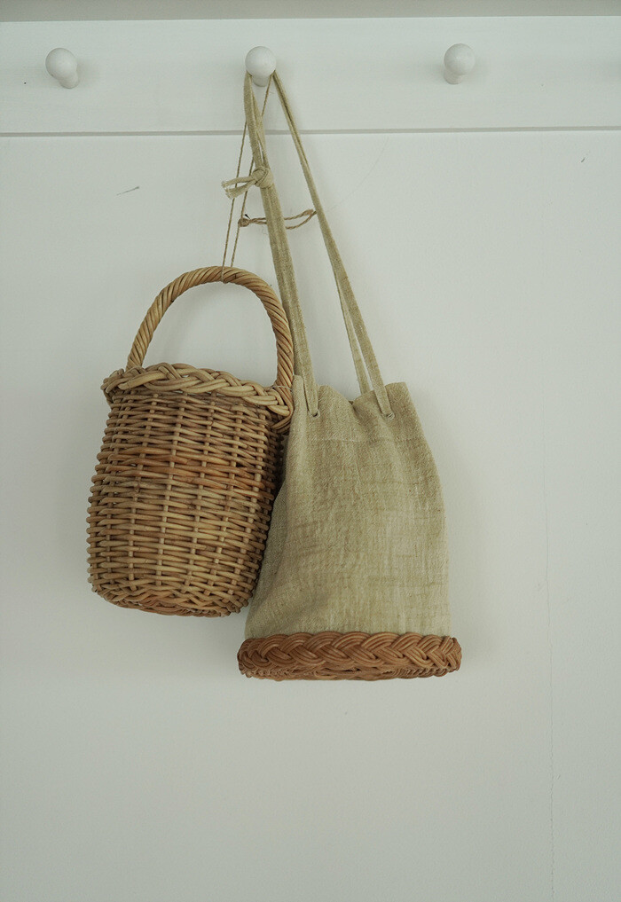 바구니와 리넨이 결합된 형태의 미니백입니다.