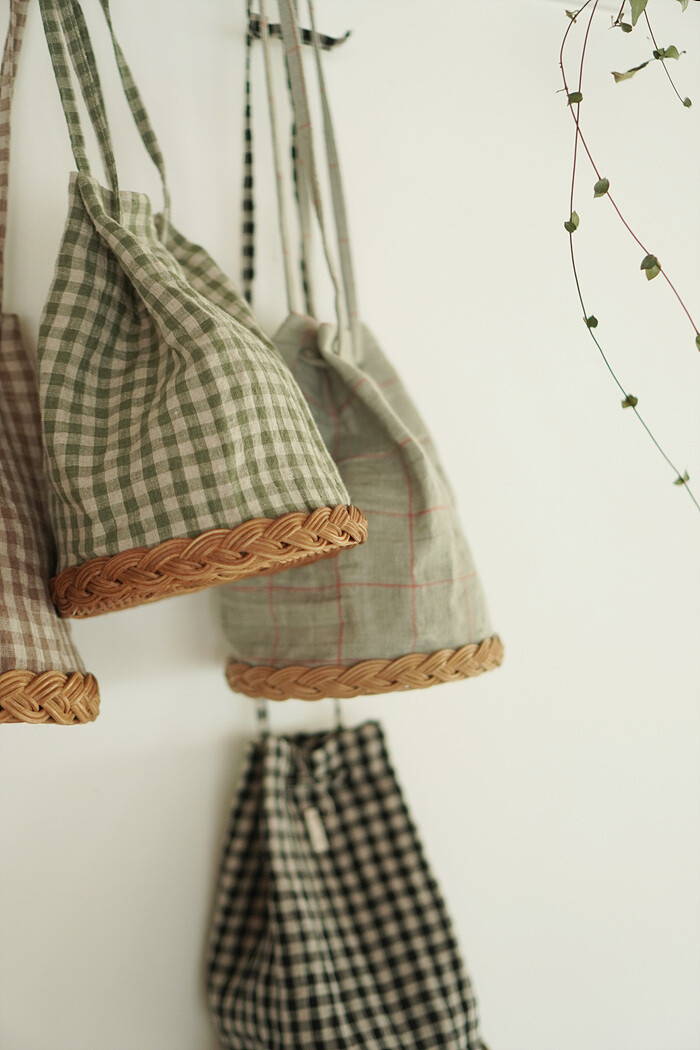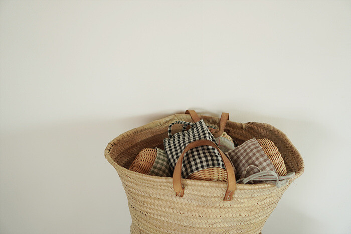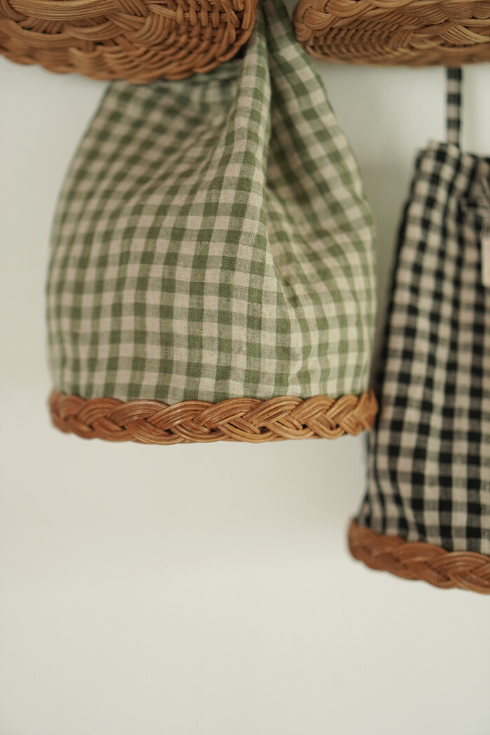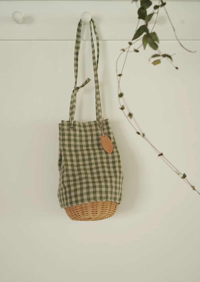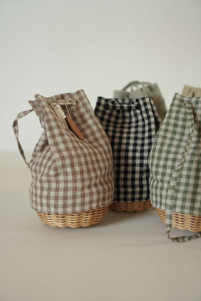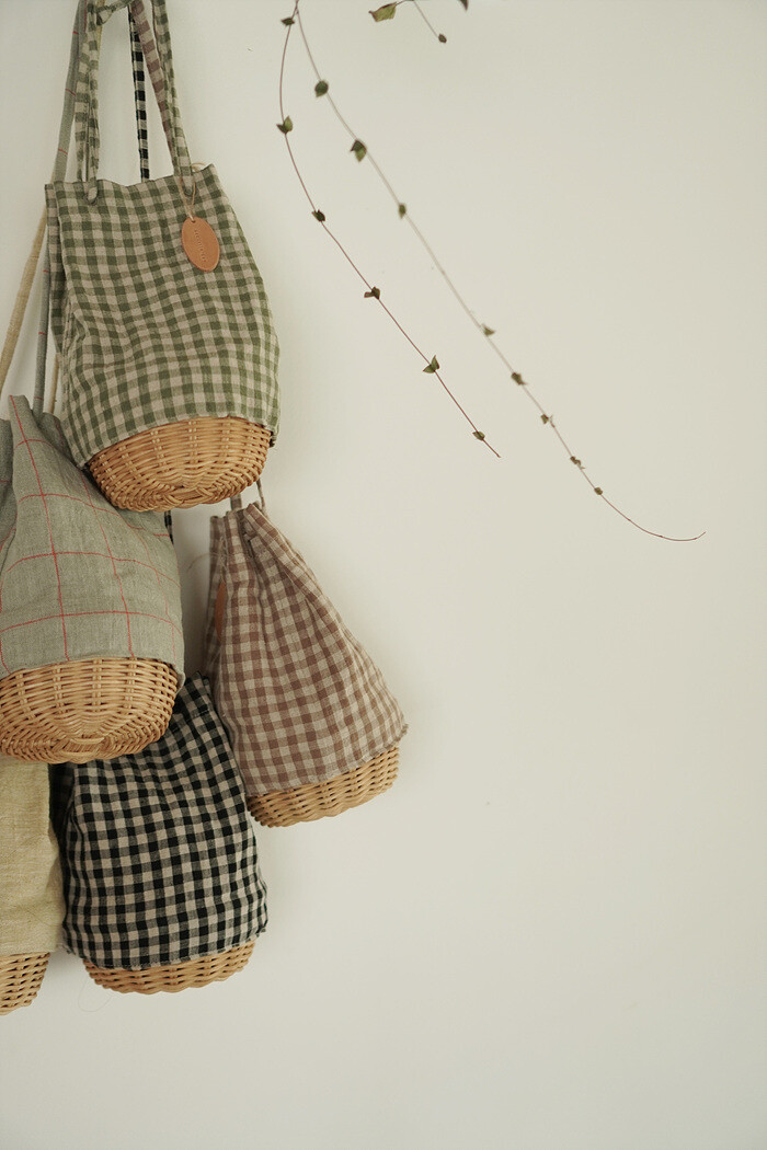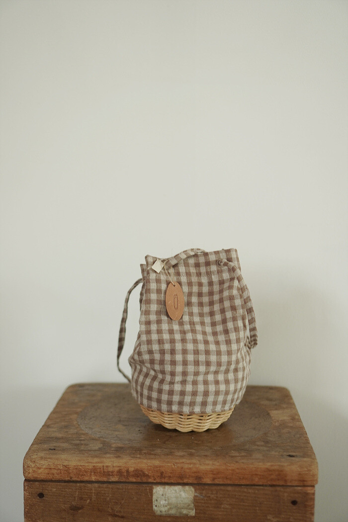 바구니와 리넨이 결합된 형태의 미니백입니다.