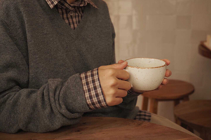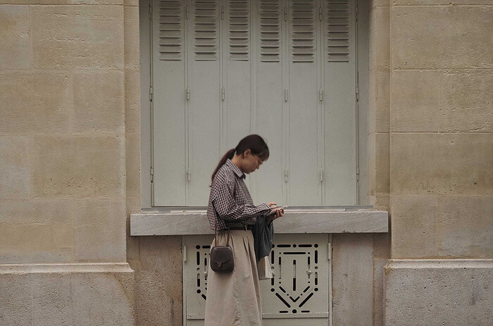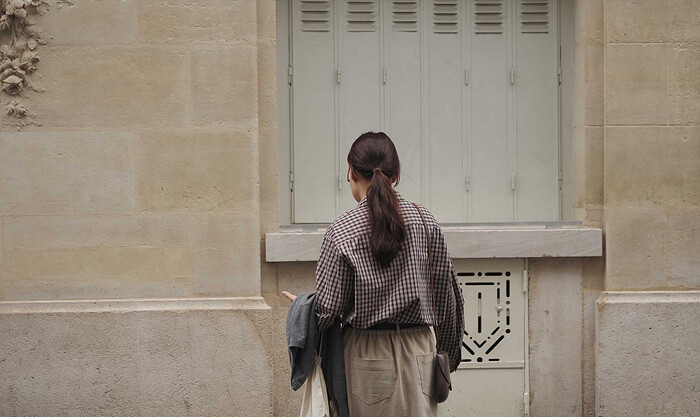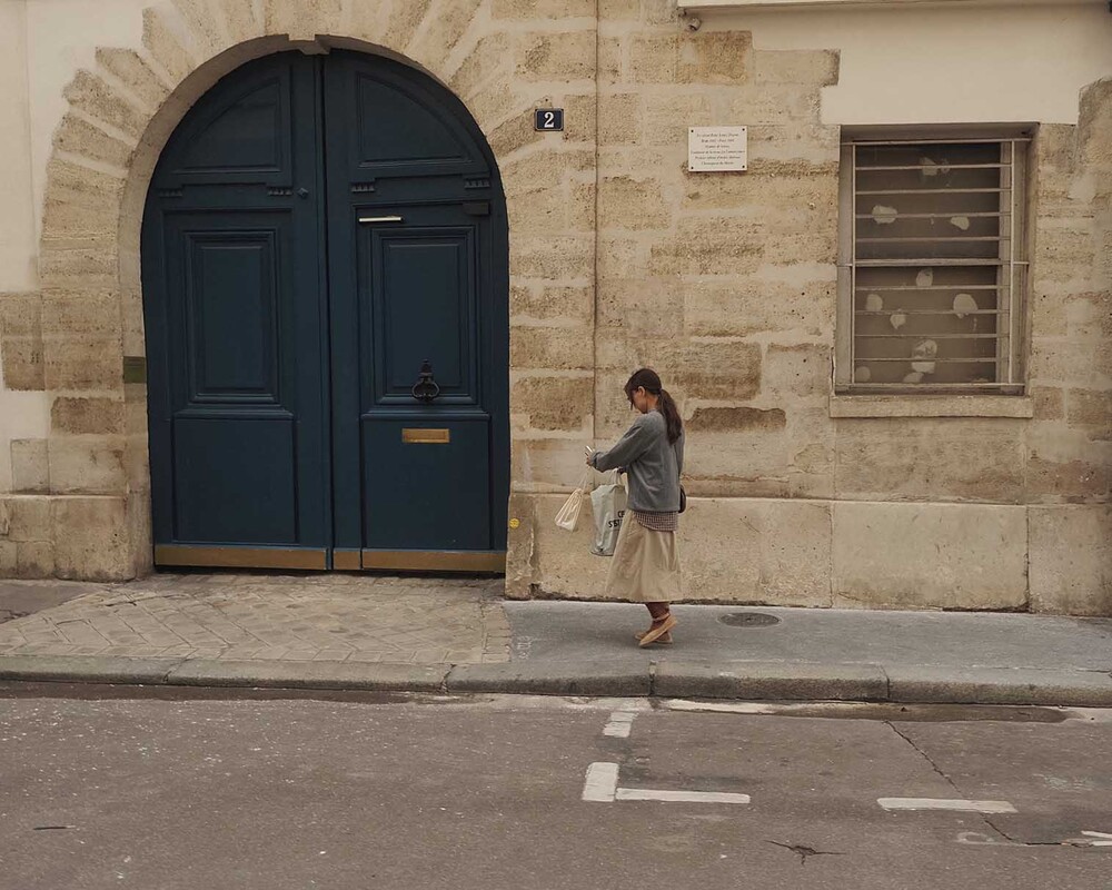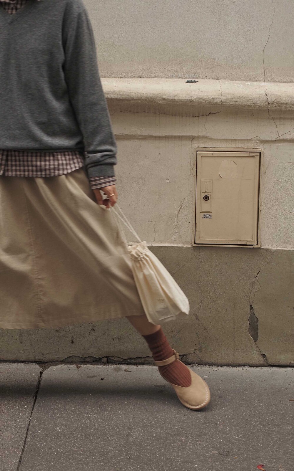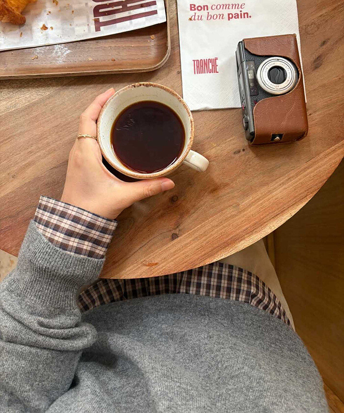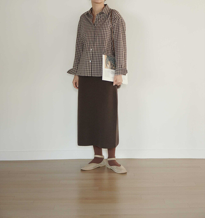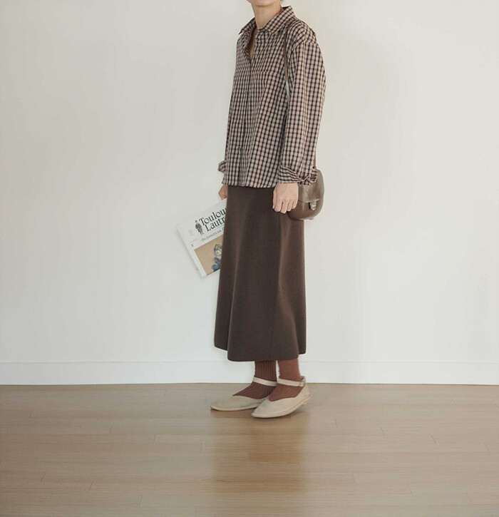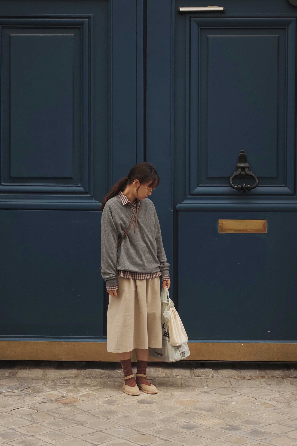 파리에서는 멜란 그레이 컬러의 스웨터와 함께 입었습니다.