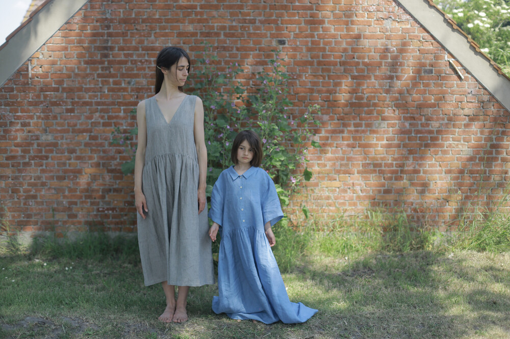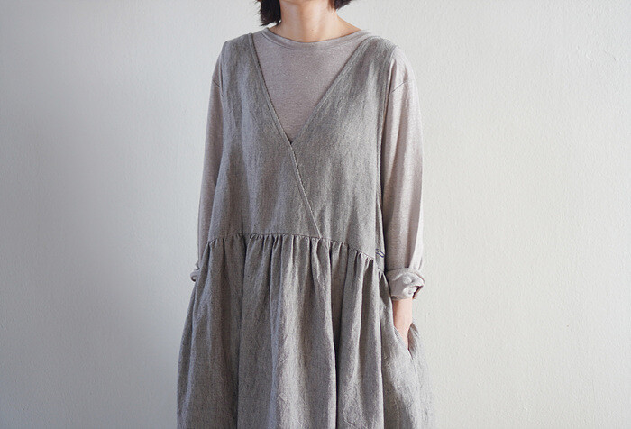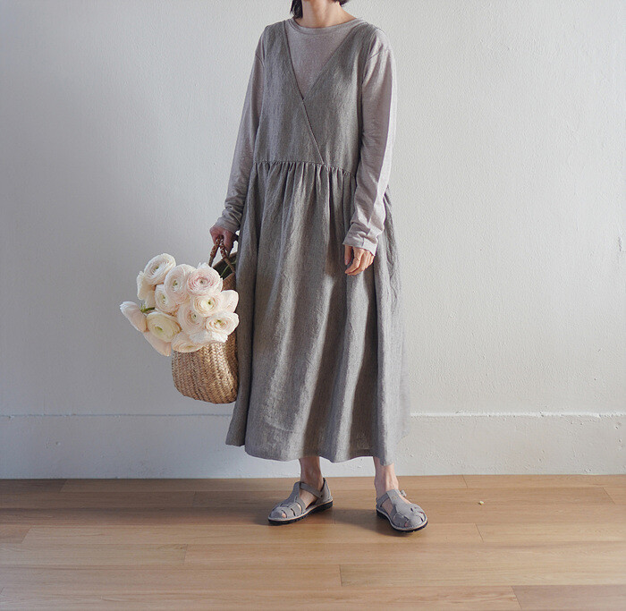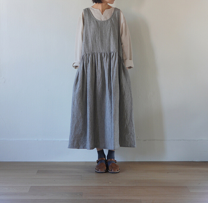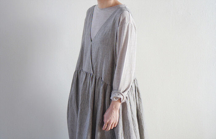 림 레이어드 원피스, stripe (리투아니아 린넨)