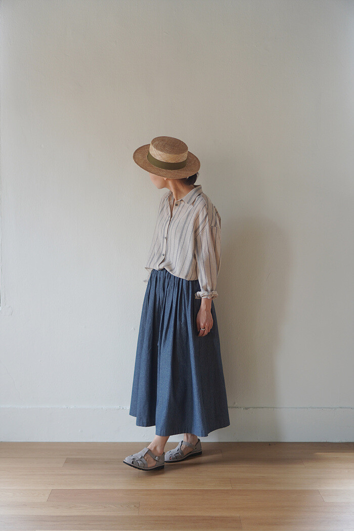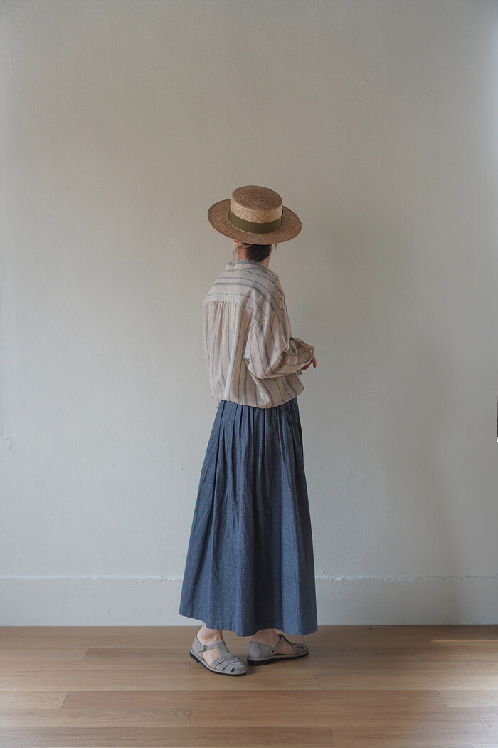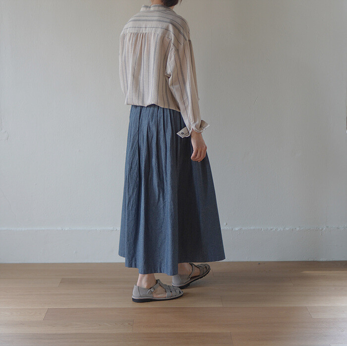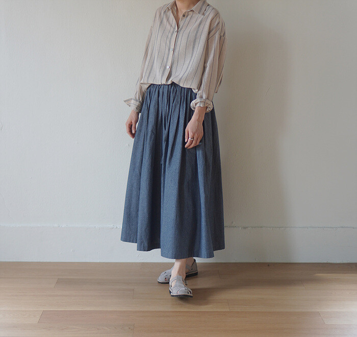 뒷 요크 아랫쪽에 셔링이 잔잔히 잡혀있어