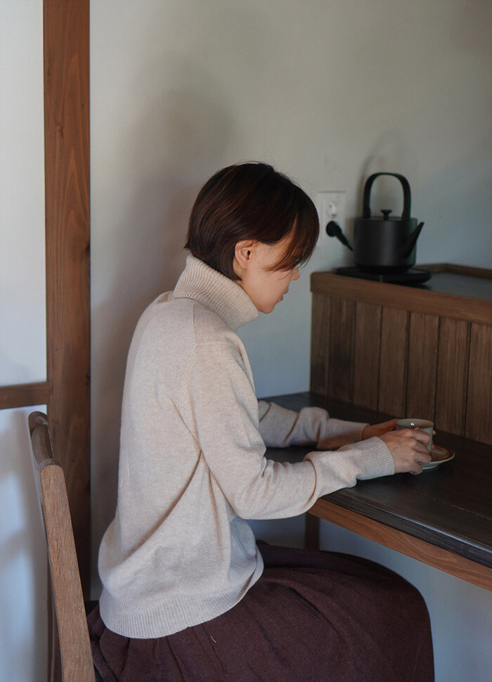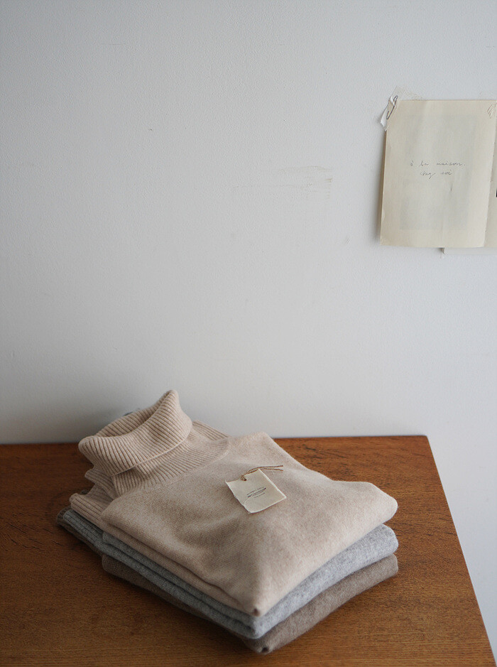 넥, 소매, 밑단 부분은 립 조직으로 짜여졌습니다.