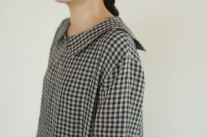 앞 부분은 단정한 느낌이 드는 넥라인입니다.