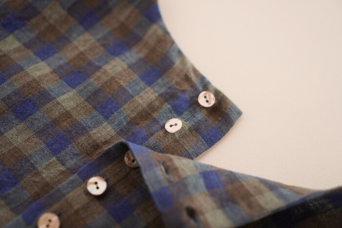 곡선의 요크선 위에 단추로 여밈이 가능한 디자인입니다.