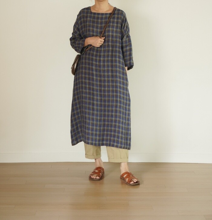 여름날 손이 자주 가는 마도 체크 원피스 입니다.