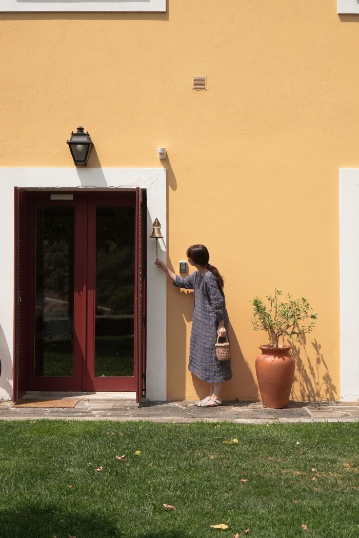 단정히 허리를 묶어 A라인 실루엣을 연출해 주어도 좋아요.