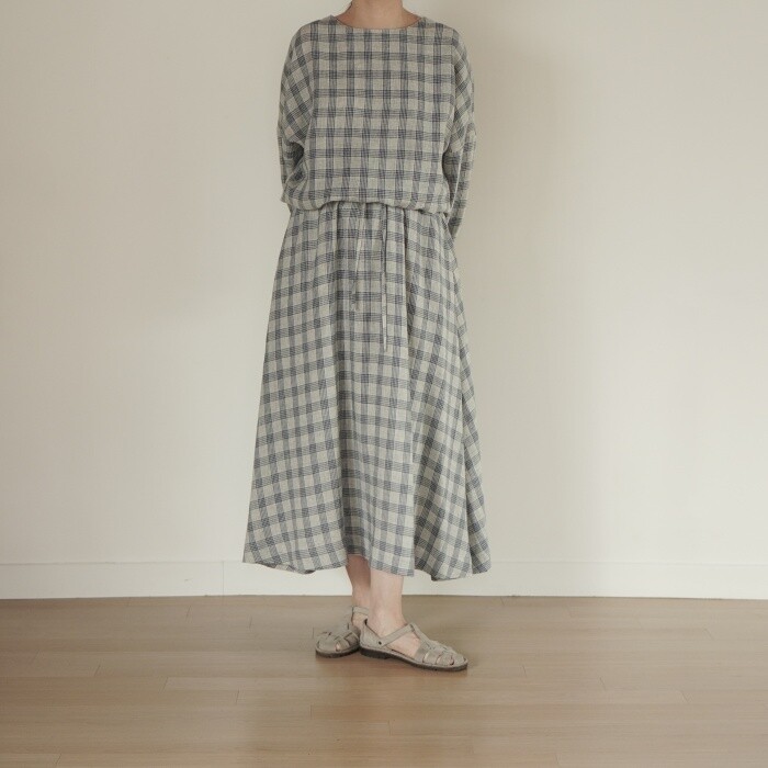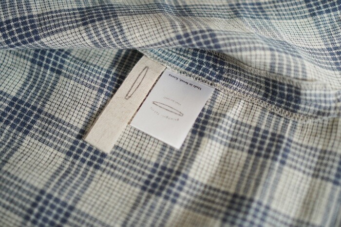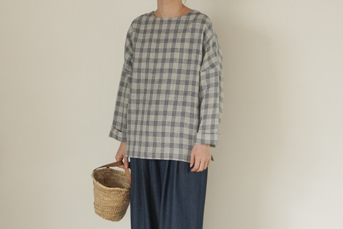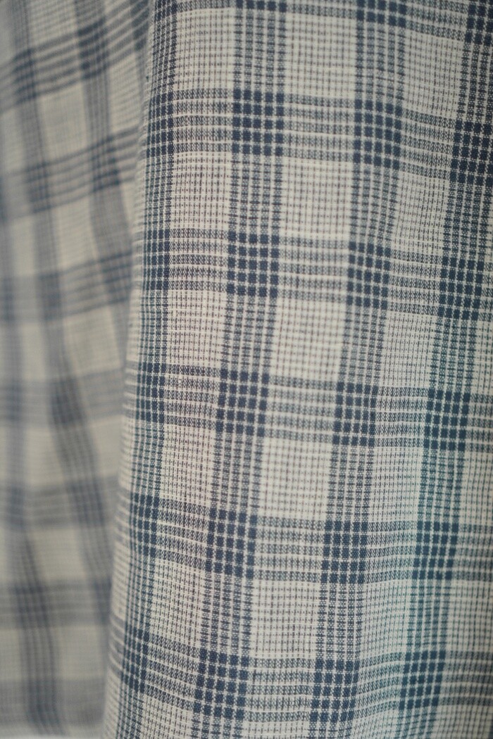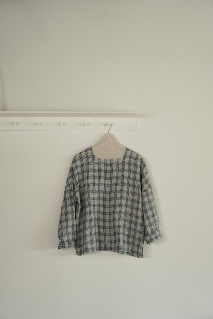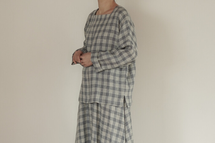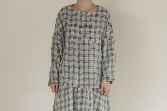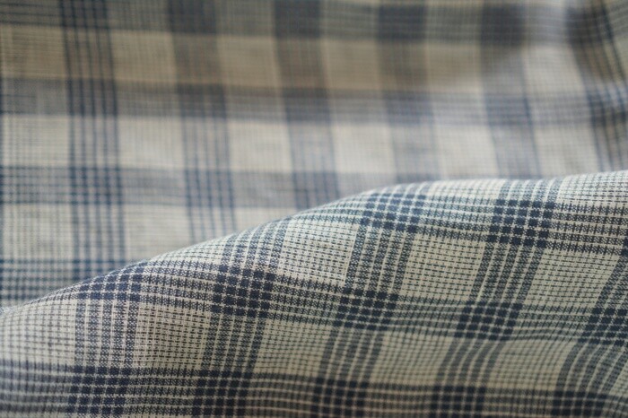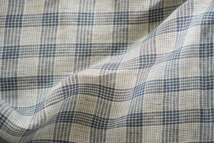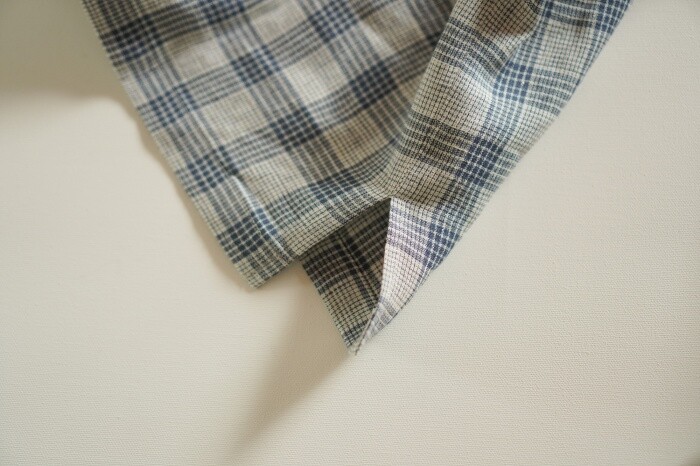 옅은 아이보리 위에 시원한 블루빛의 체크가 직조된 리넨 소재로,