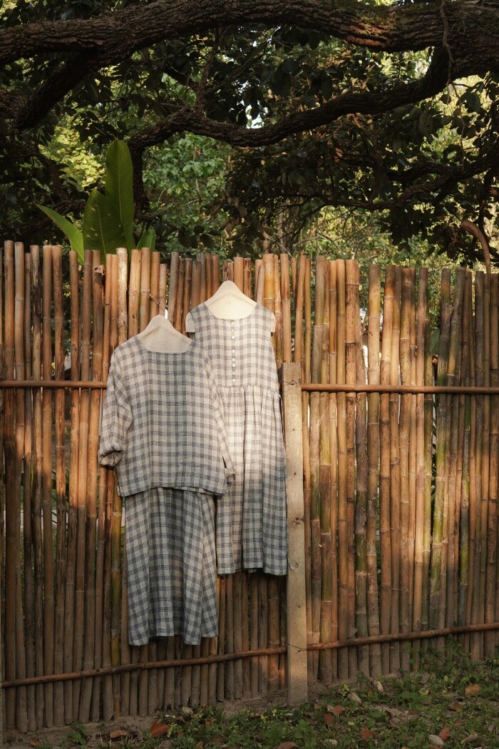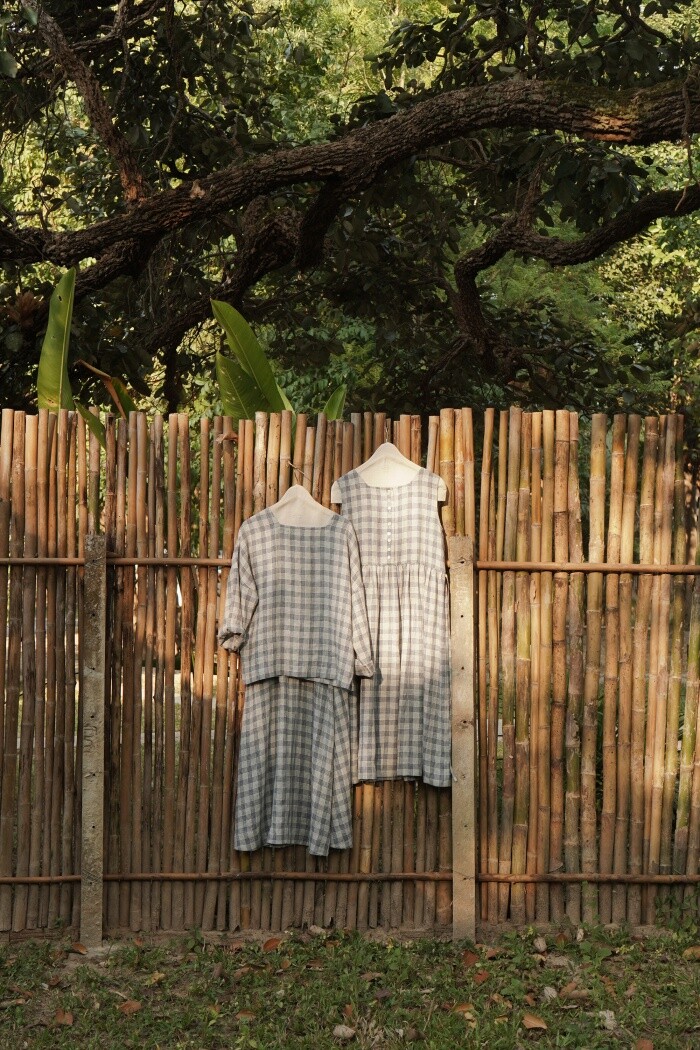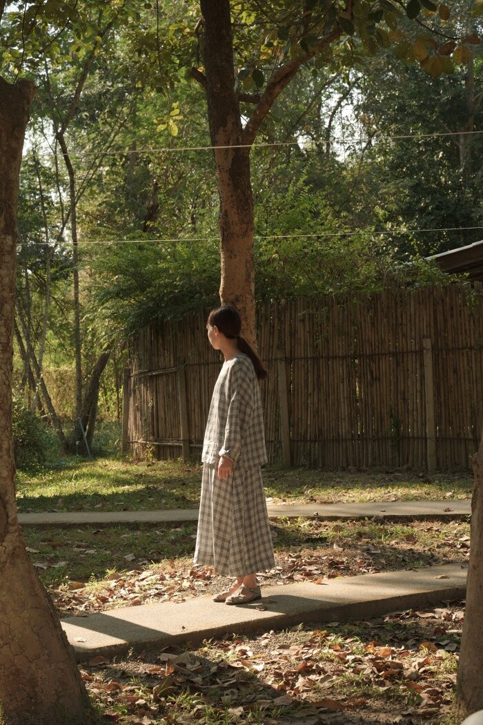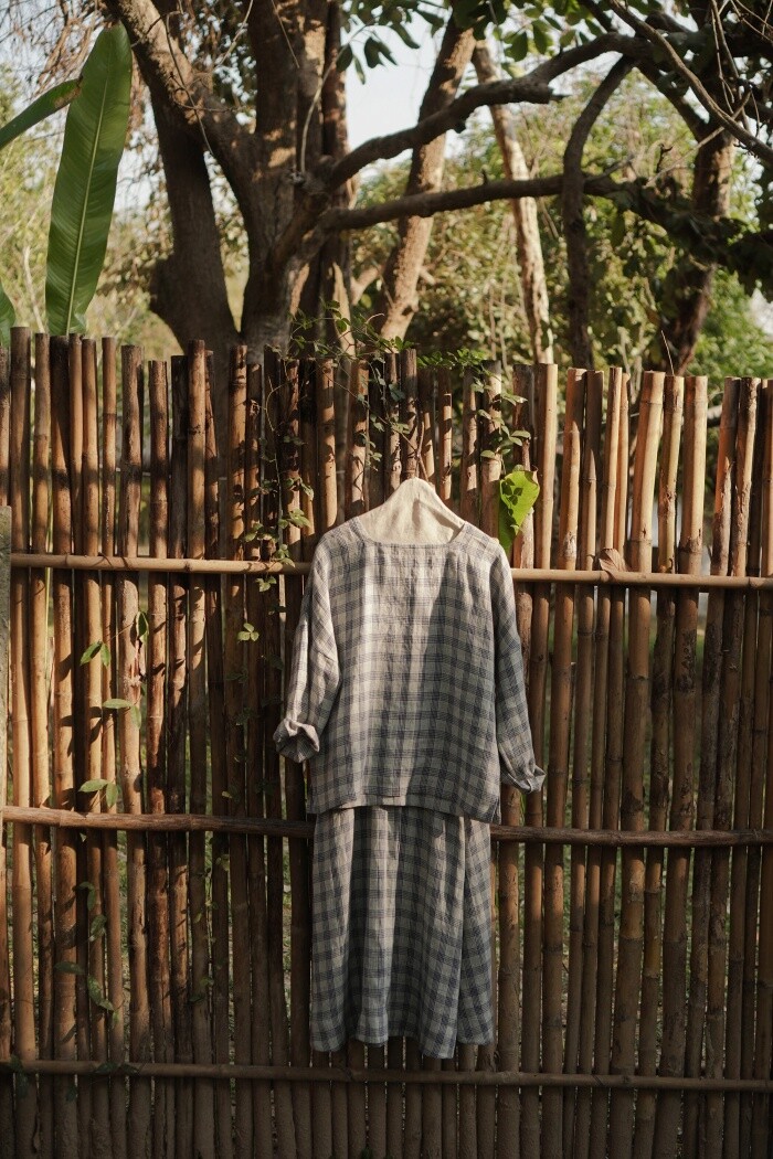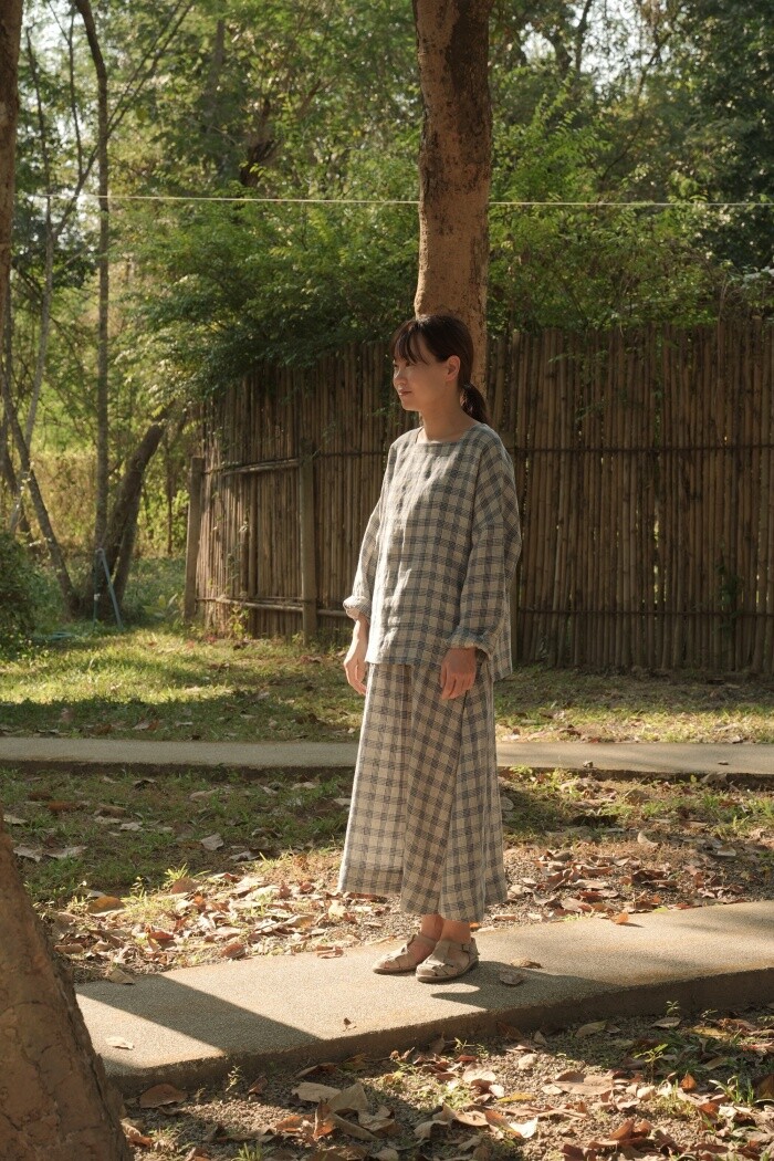 리투아니아에서 주문 제작된 체크 패턴의 리넨 소재로