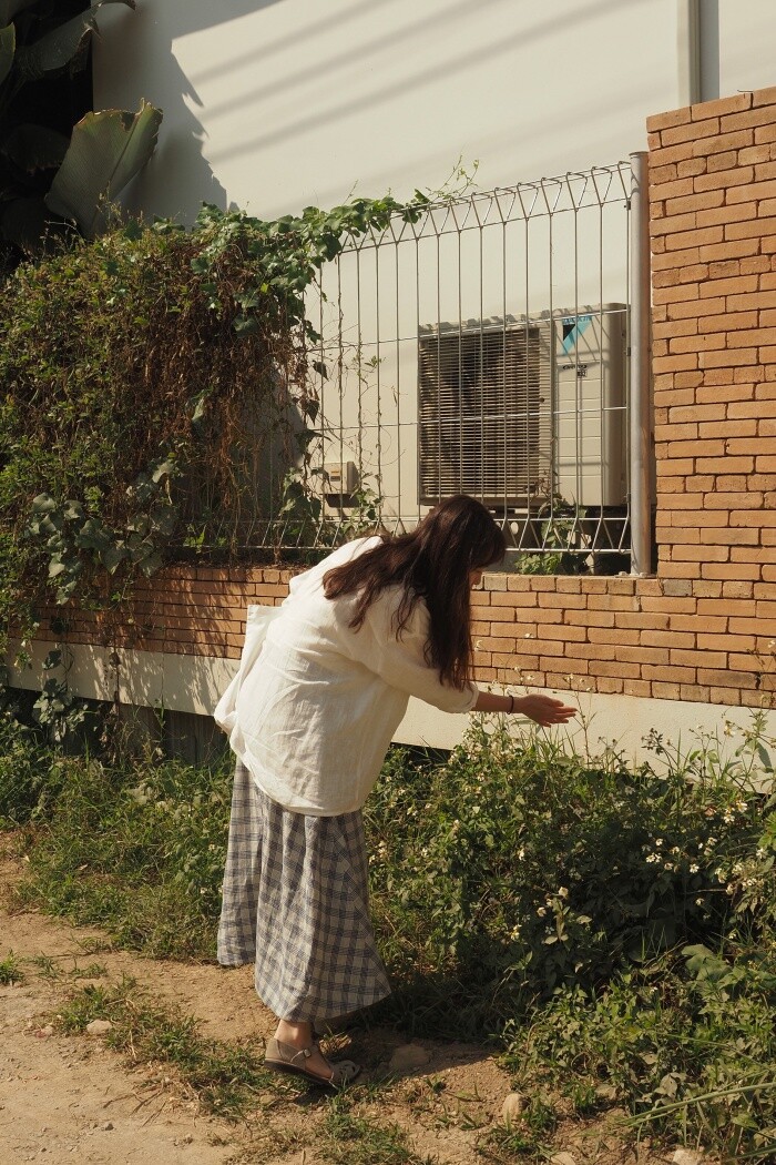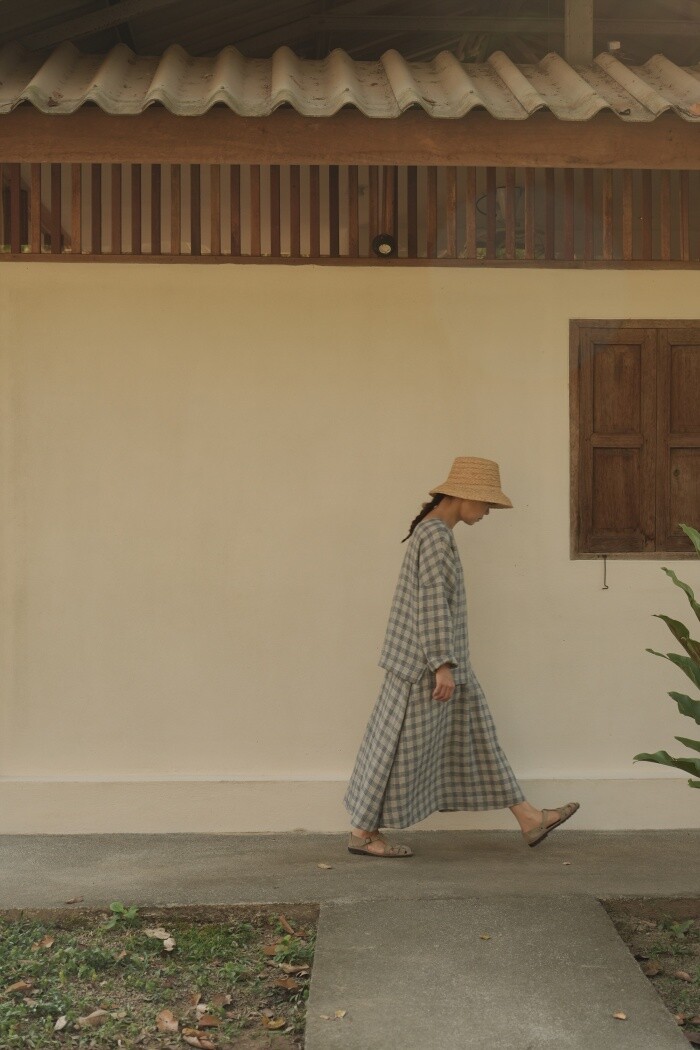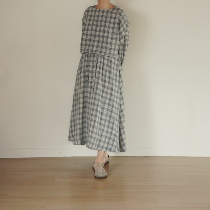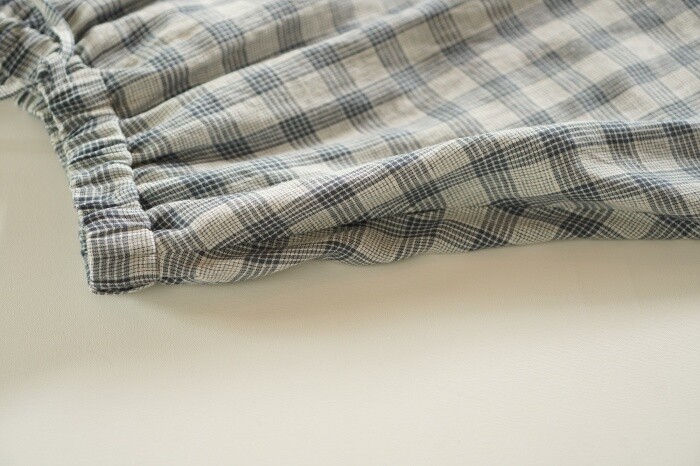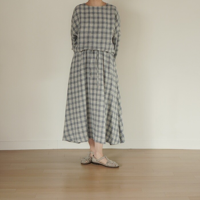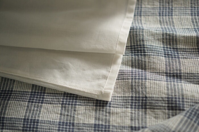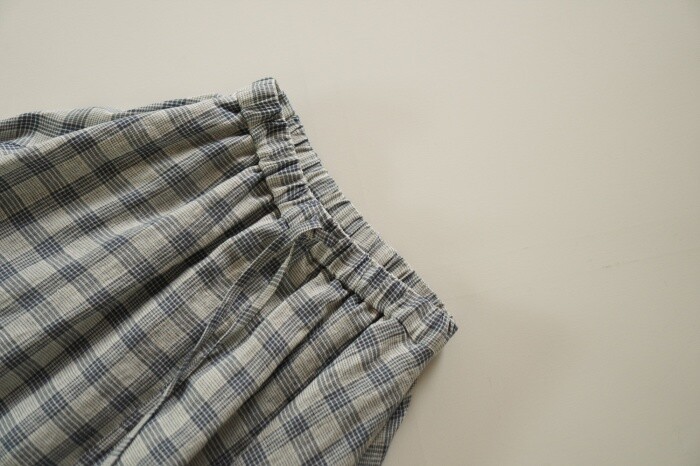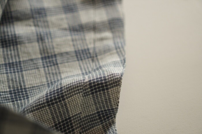 옅은 아이보리 위에 시원한 블루빛의 체크가 직조된 리넨 소재로,