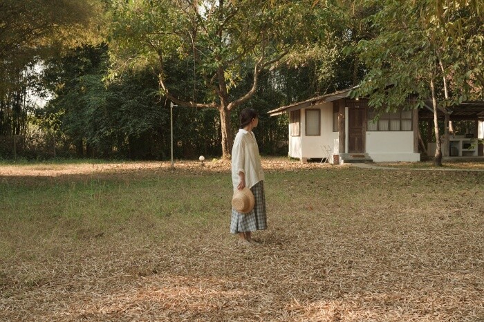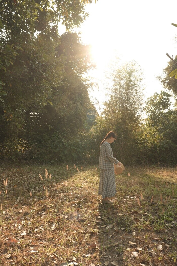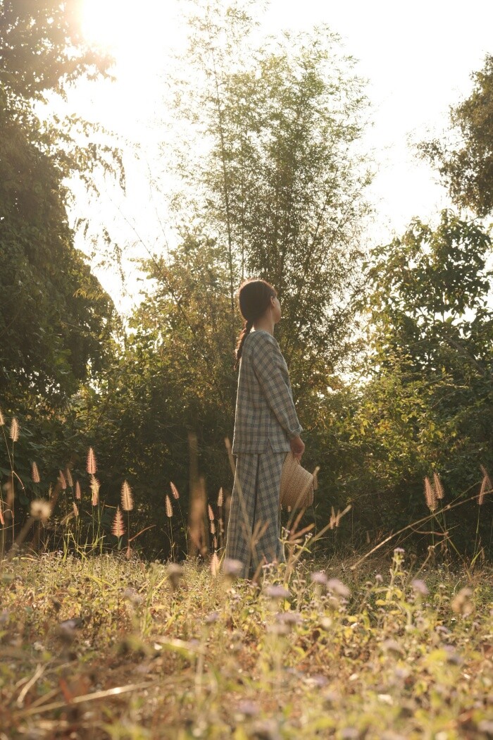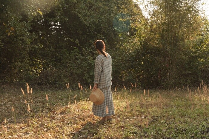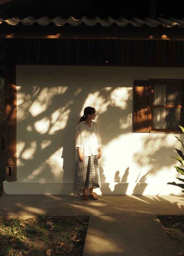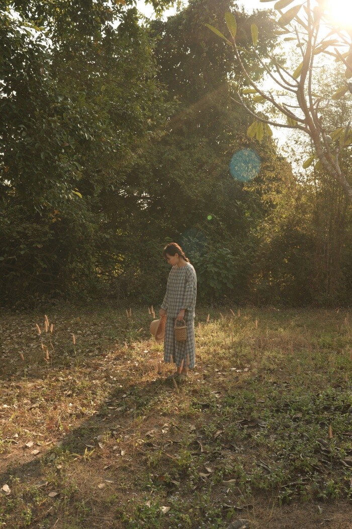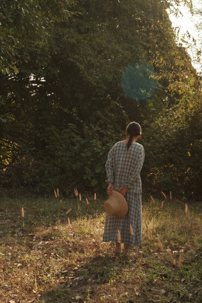 옅은 아이보리 위에 시원한 블루빛의 체크가 직조된 리넨 소재로,