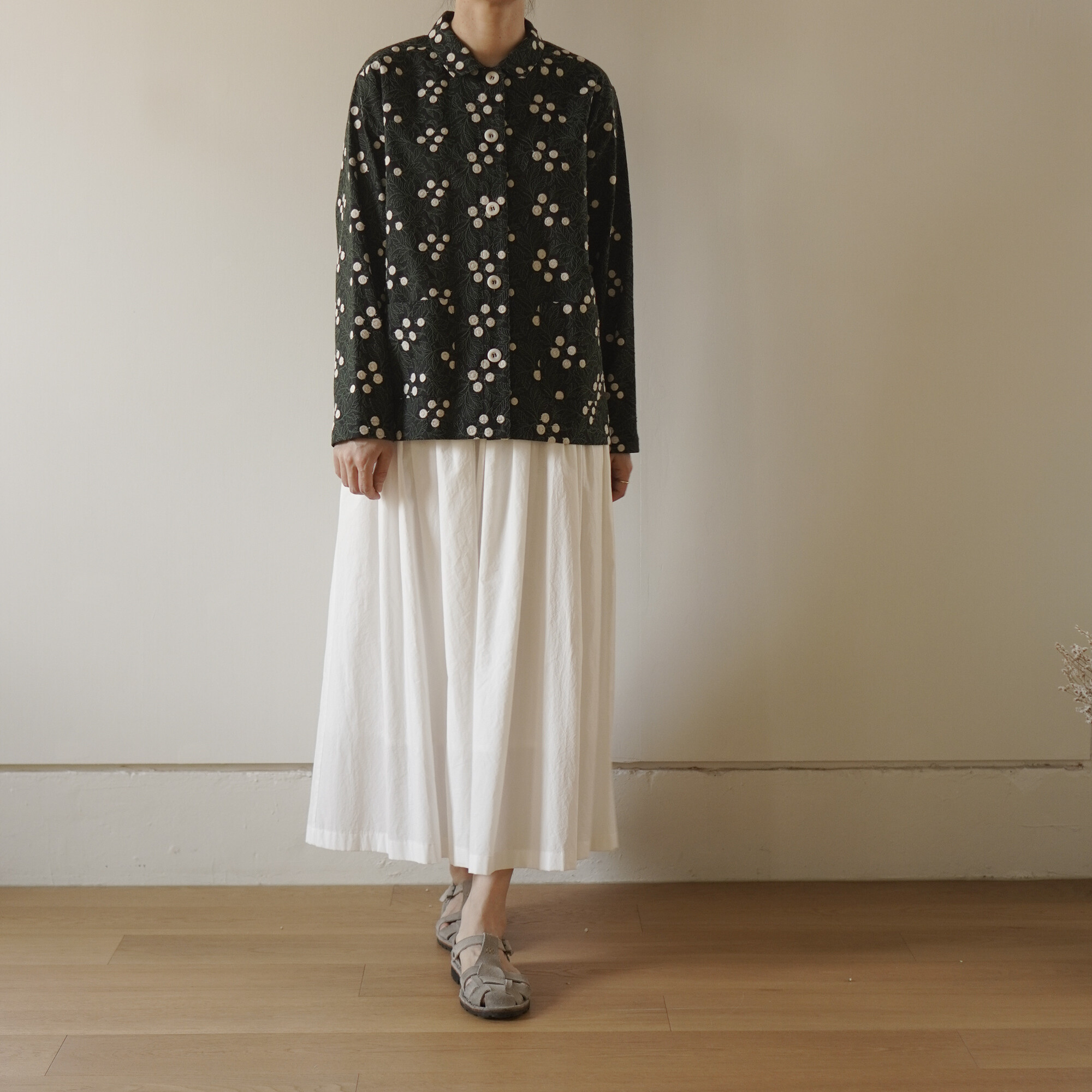 { 풀 스커트, white 컬러와 함께 }