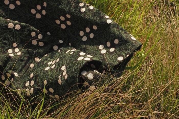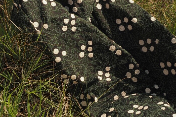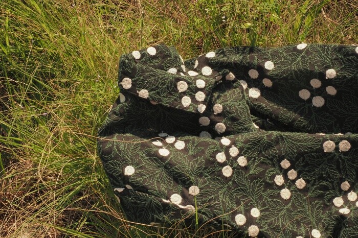 자수가 입체적으로 새겨진 패브릭 입니다.