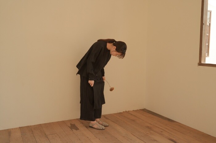 움직임에 따라 자연스럽게 흐르는 실루엣.