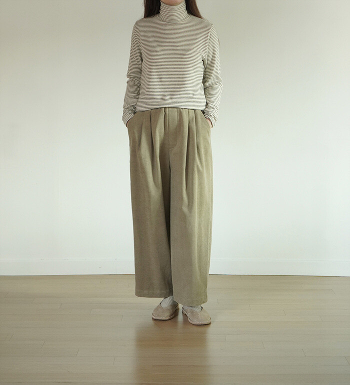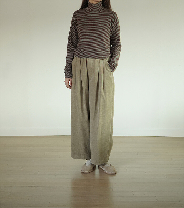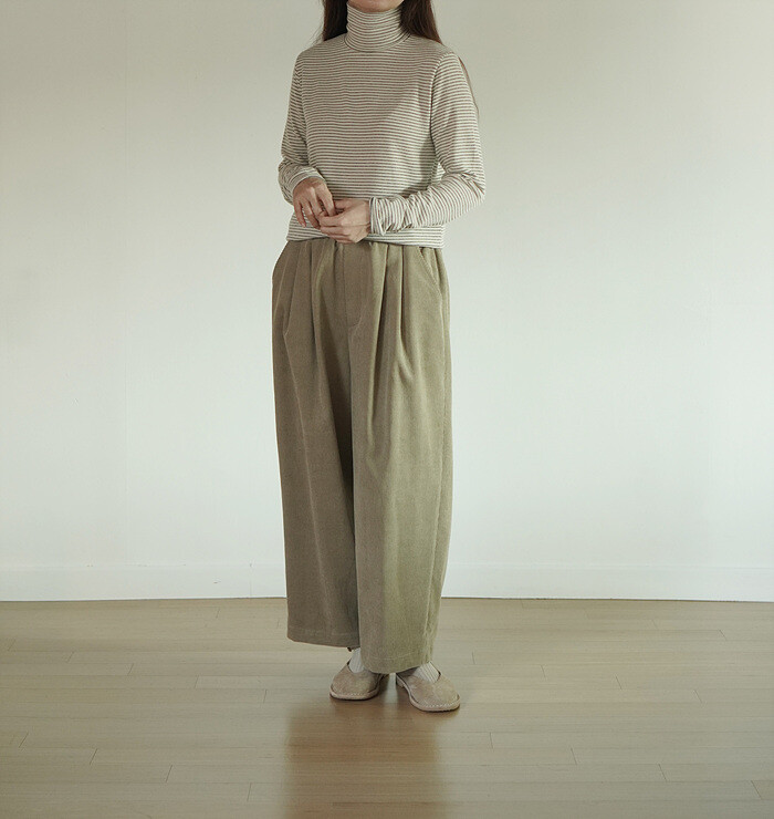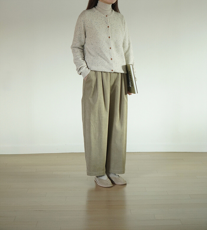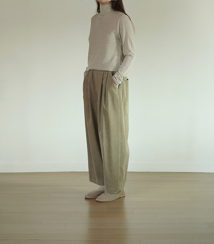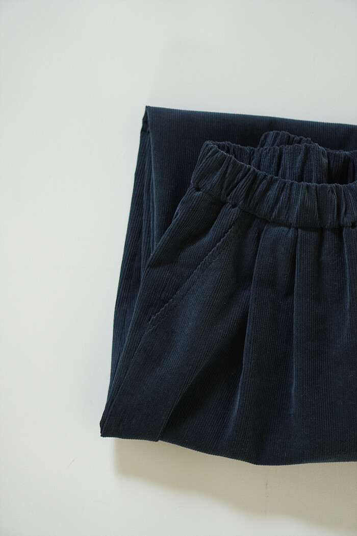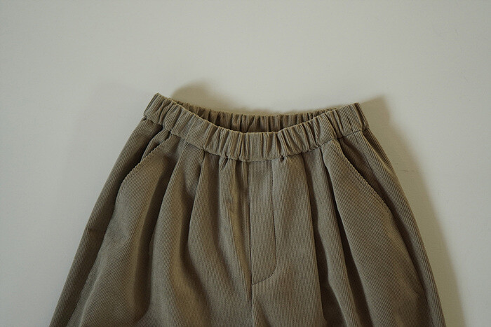코듀로이 소재와 턱 디테일이 만나,