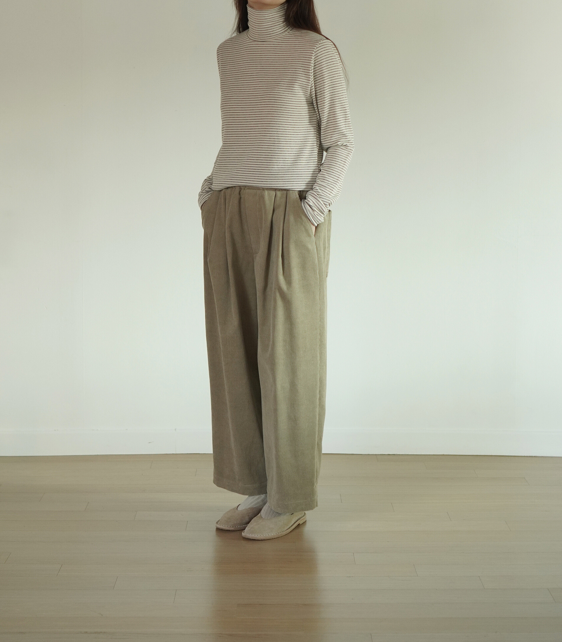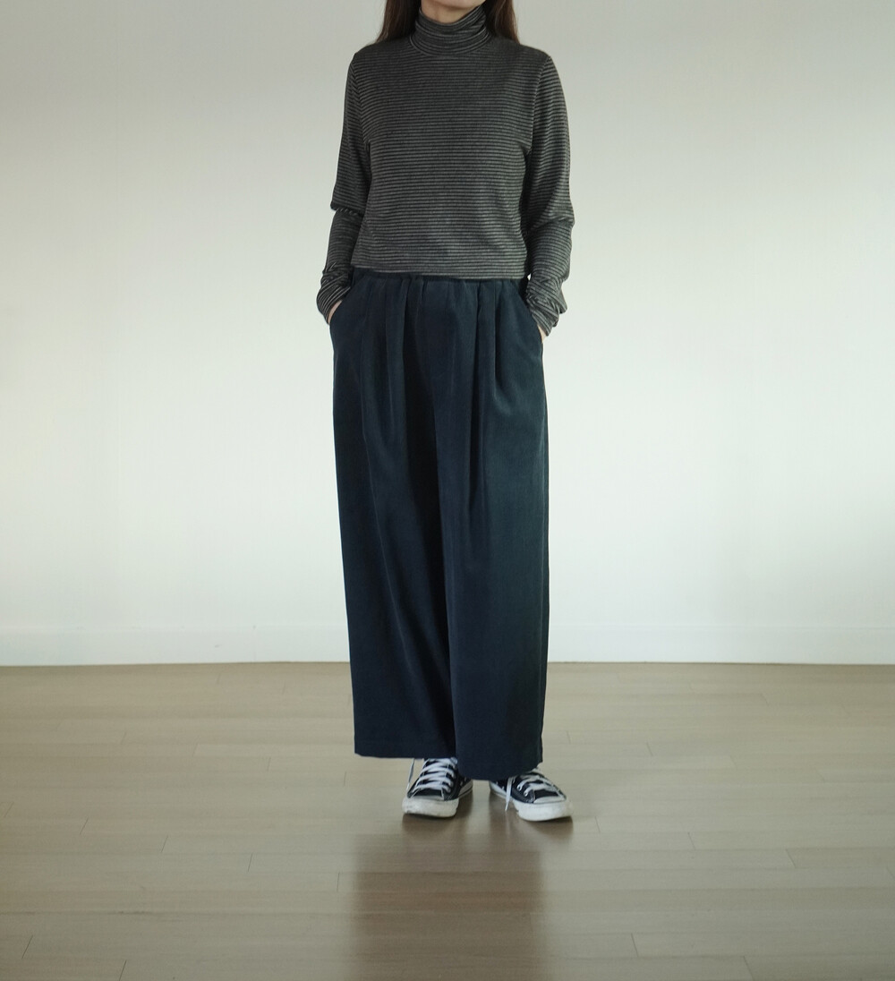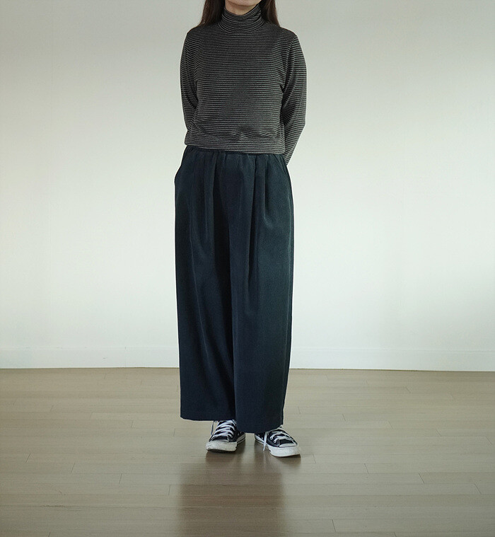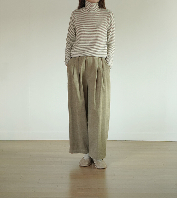 코듀로이 소재와 턱 디테일이 만나,