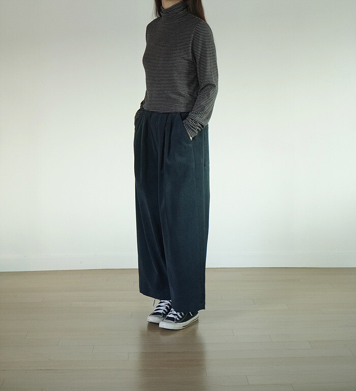 밑단은 살짝 좁아지는 듯한 느낌이 드는 실루엣입니다.