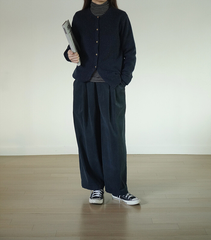같은 네이비 톤의 홈스펀 가디건, starlight 과 함께.