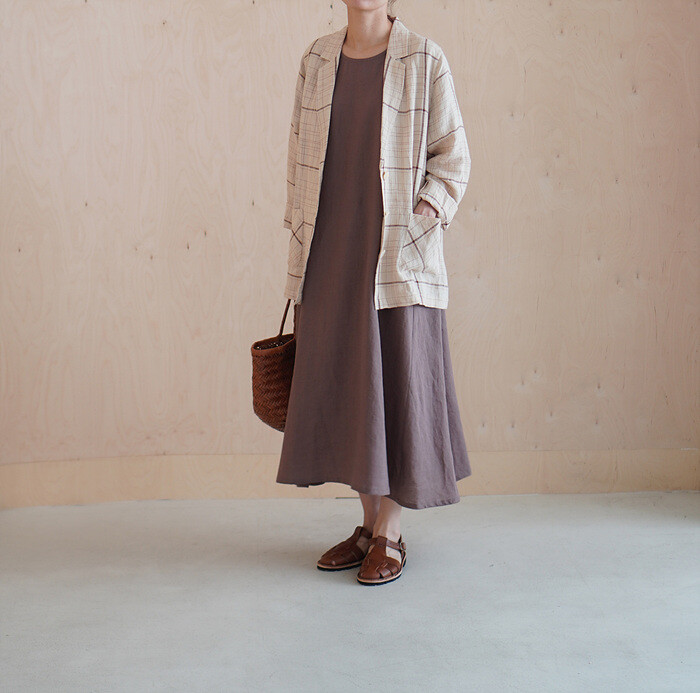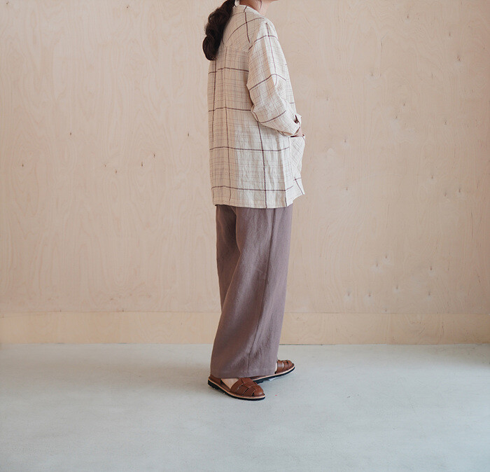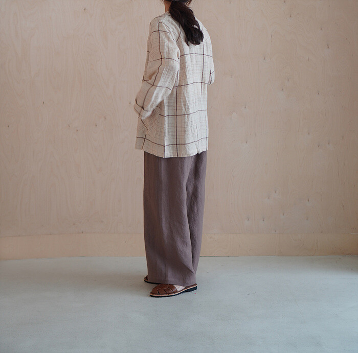 린넨 와이드 팬츠, plum brown 컬러와 함께.