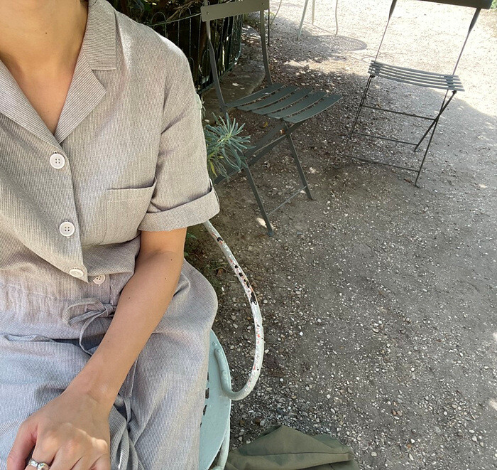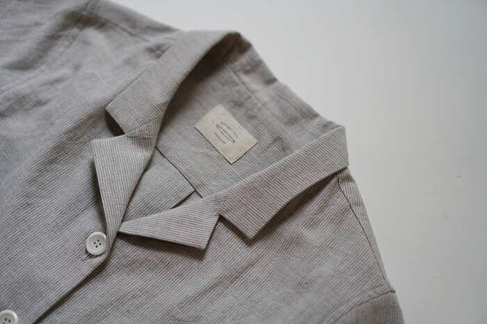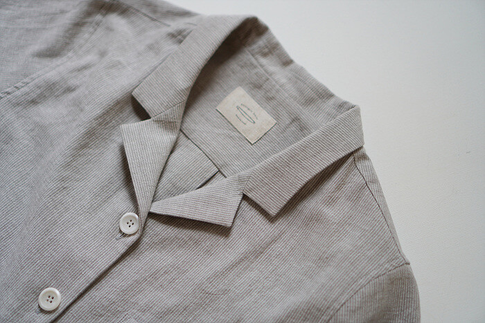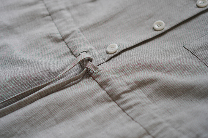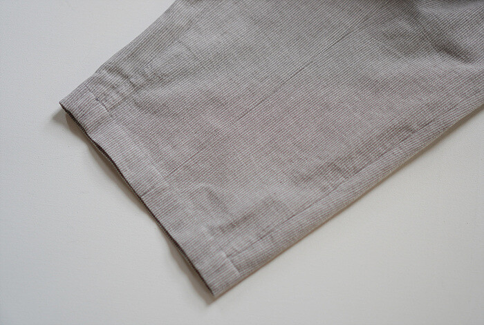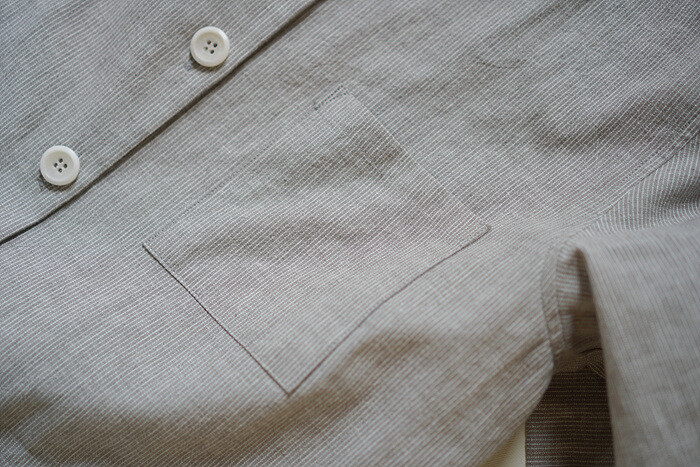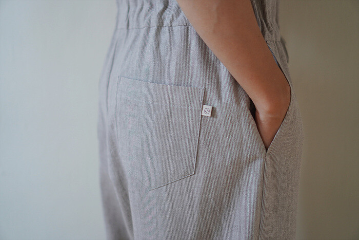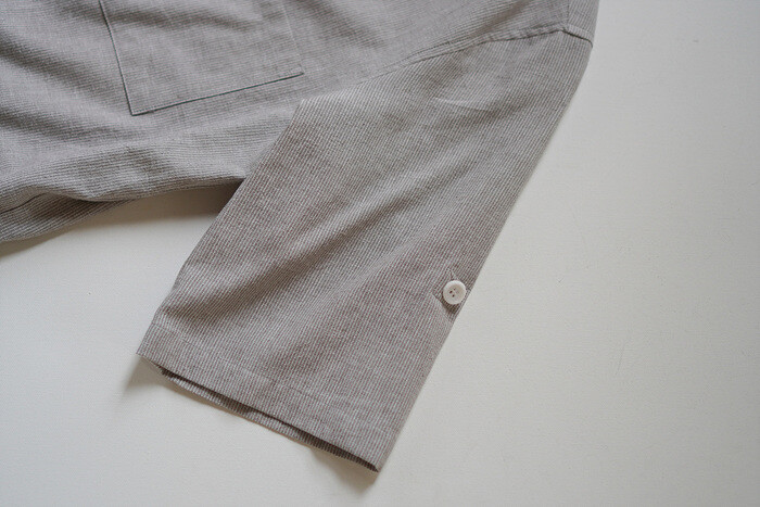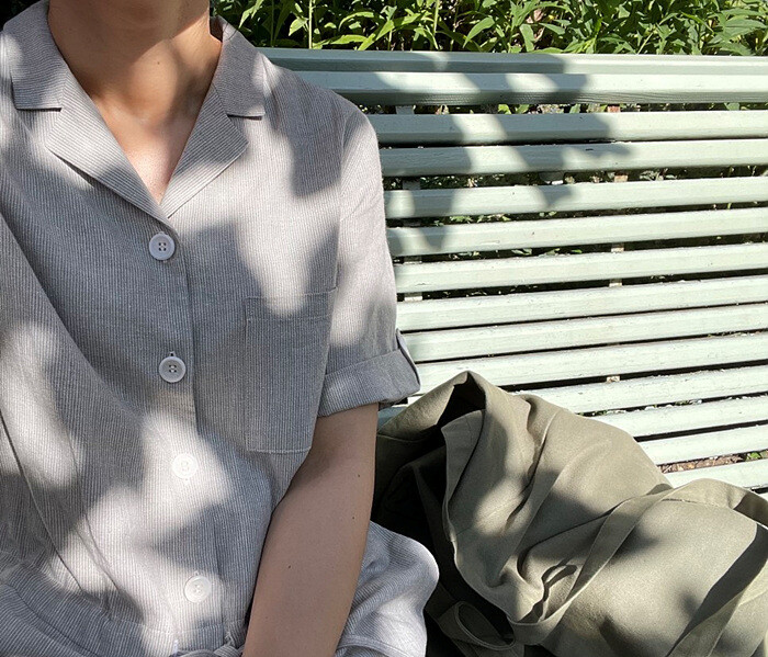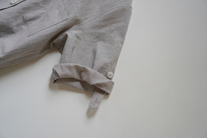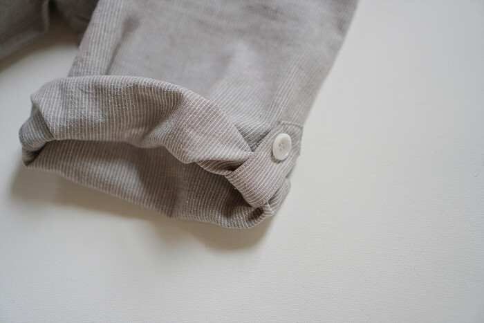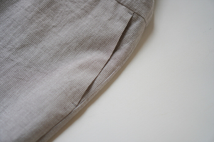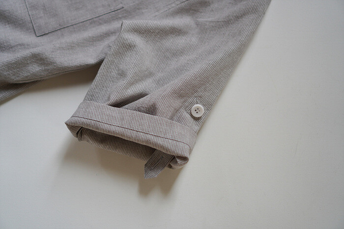 린넨과 코튼이 섞인 선염 스트라이프 소재입니다.