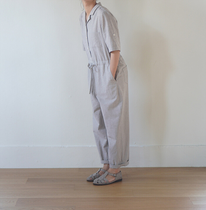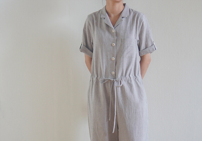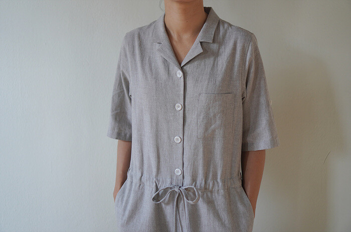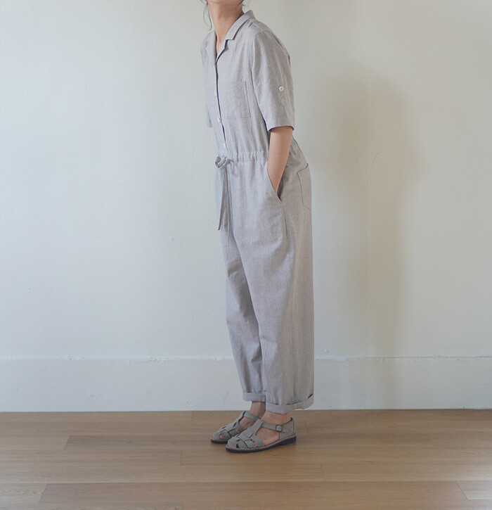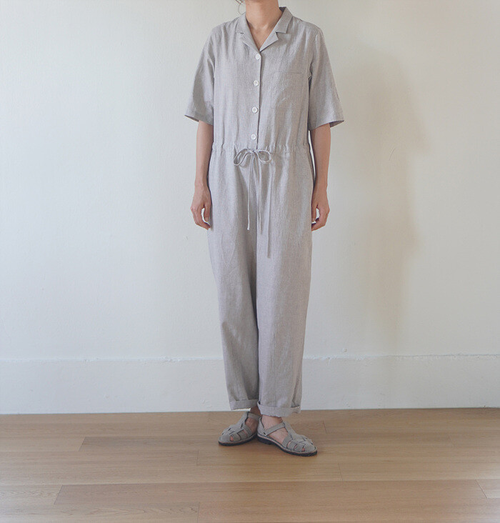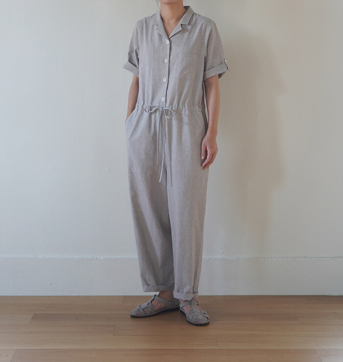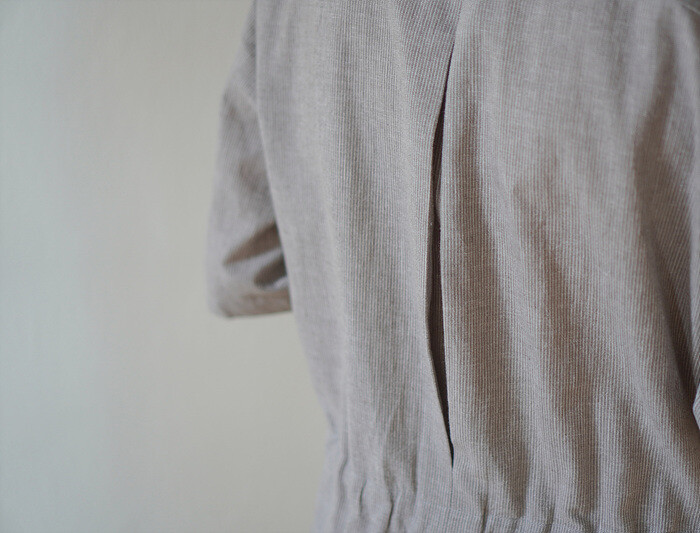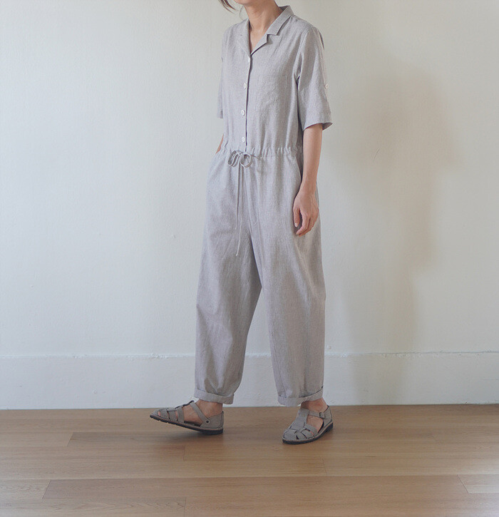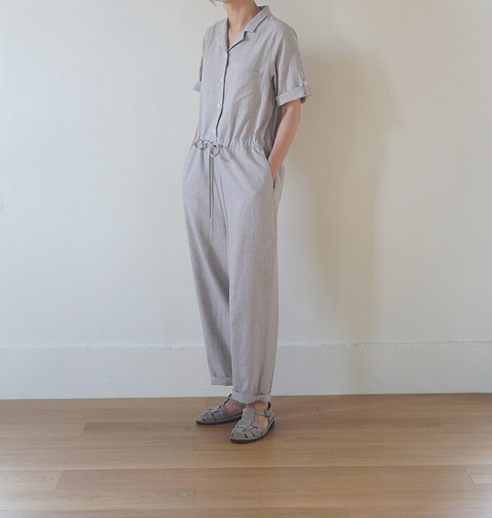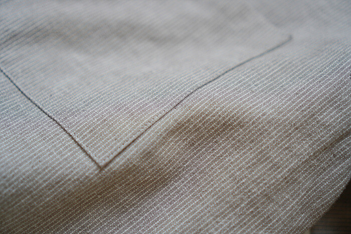 린넨과 코튼이 섞인 선염 스트라이프 소재입니다.