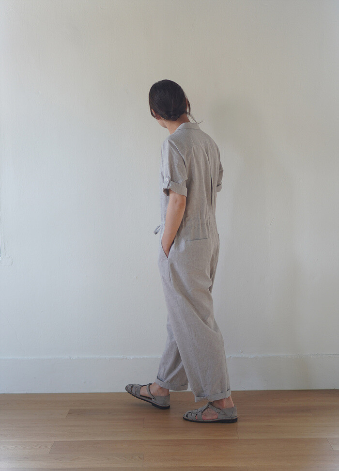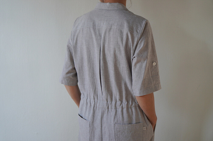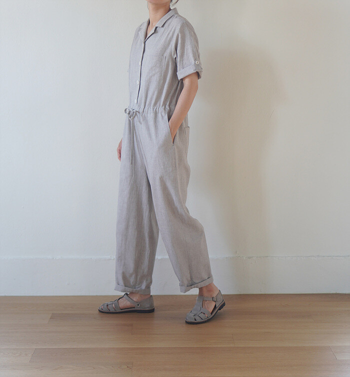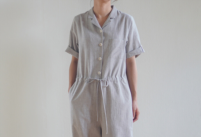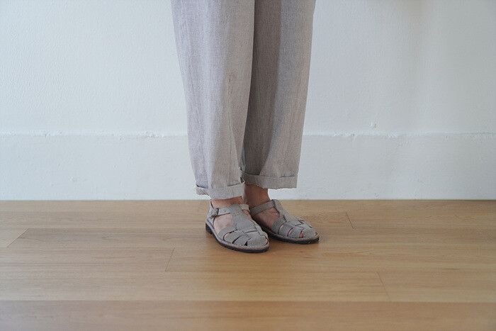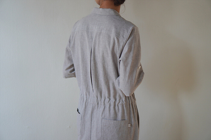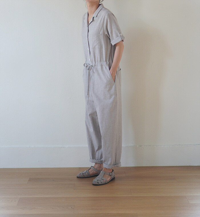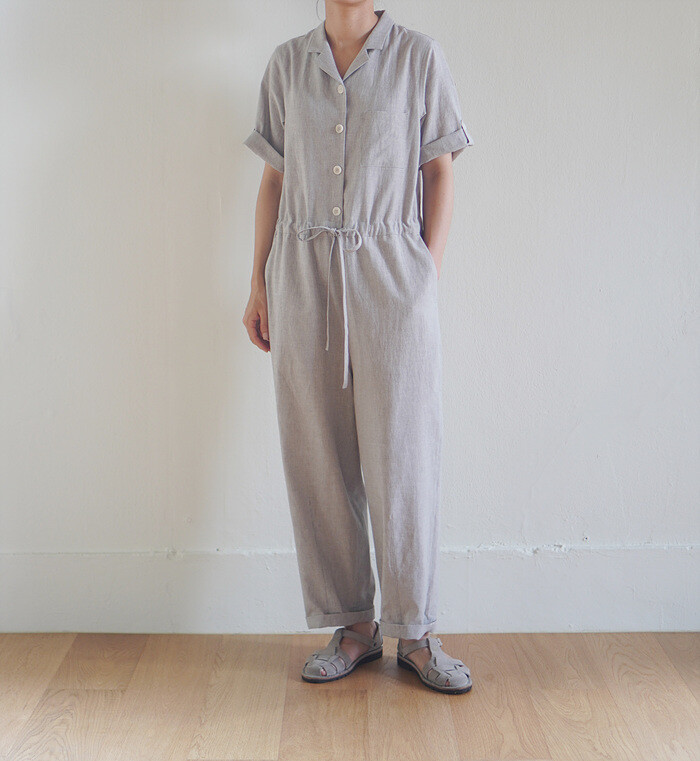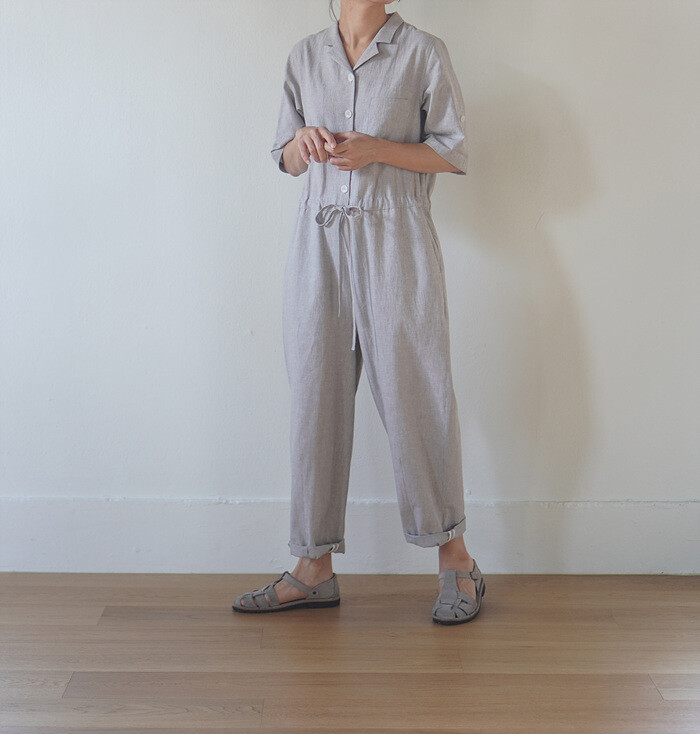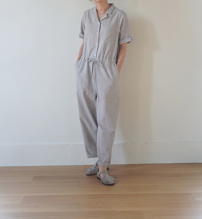 린넨과 코튼이 섞인 선염 스트라이프 소재입니다.