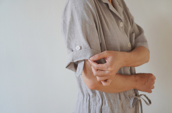 펼쳐서 착용했을 때엔 팔꿈치를 덮는 길이감으로