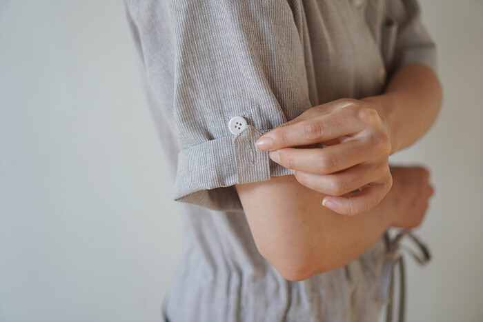 단추와 소매 안쪽에 숨은 탭장식을 이용해