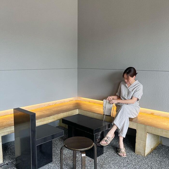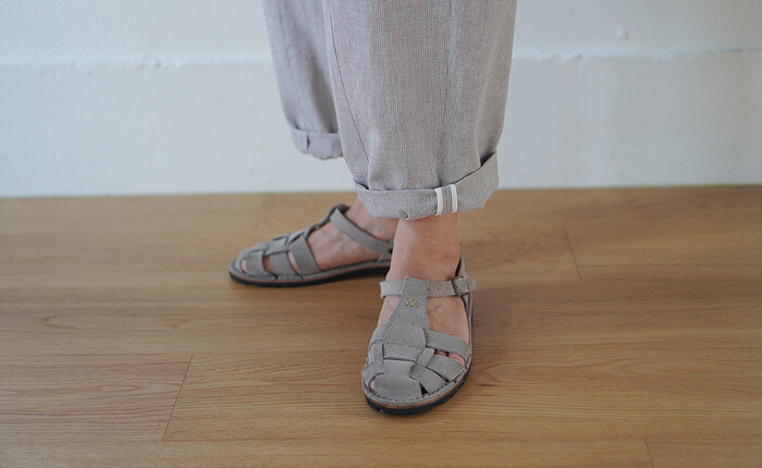 옅은 톤의그레이 컬러와 실처럼 얇은 아이보리가 교차되어 짜여져