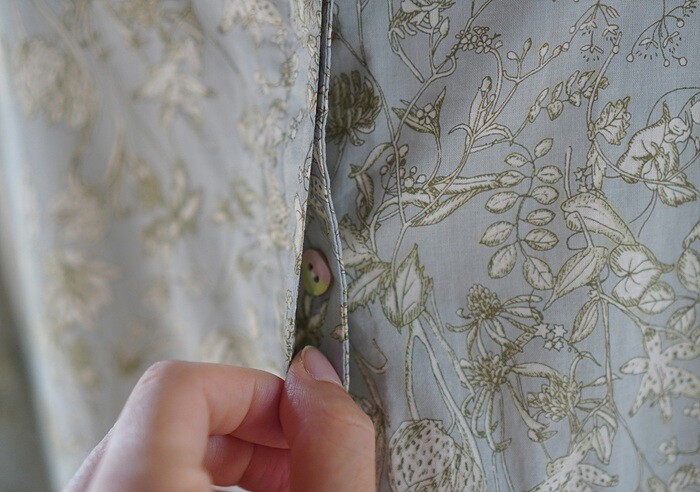 여밈 부분은 단추가 숨어 있는 플랩 디자인입니다.