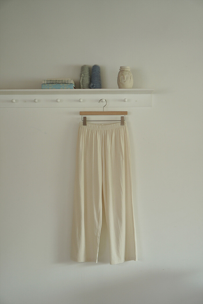 바지는 전체 허리 고무줄로 편안한 핏을 가지고 있습니다