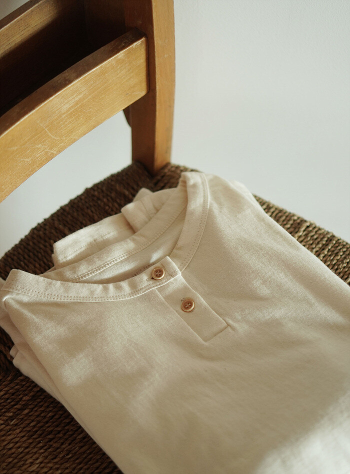 단추 여밈 단추로 넥 포인트를 주었습니다