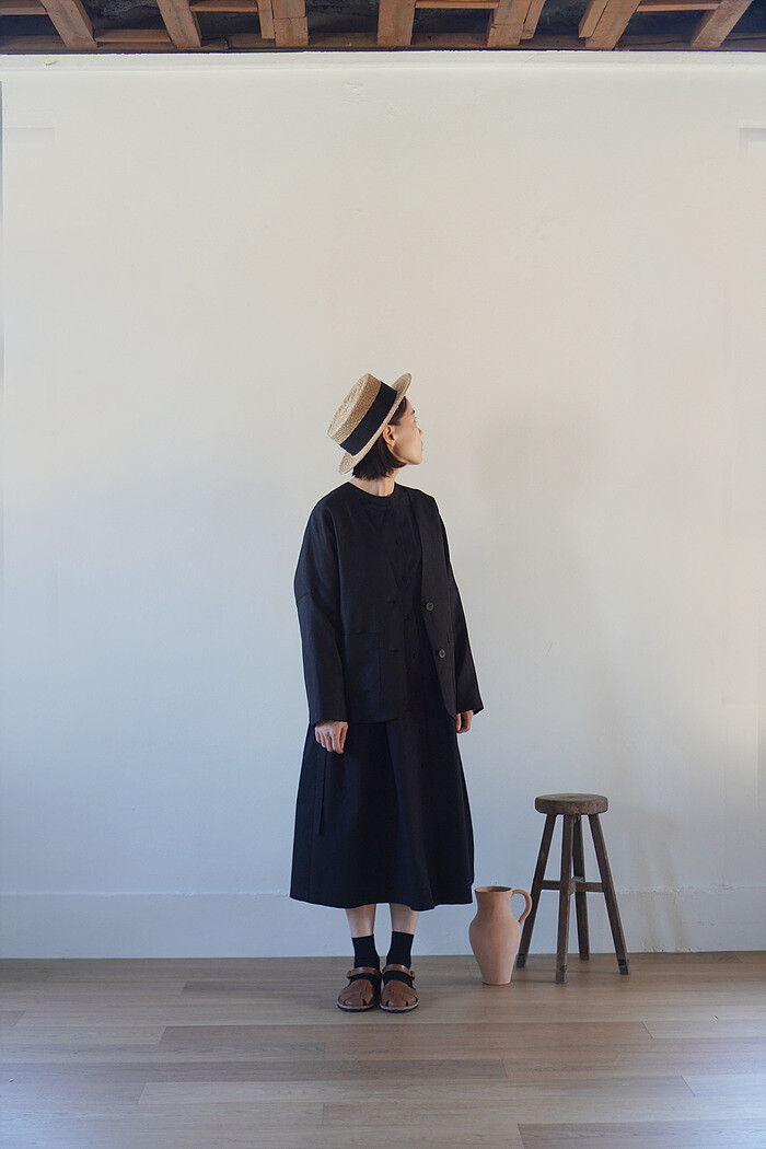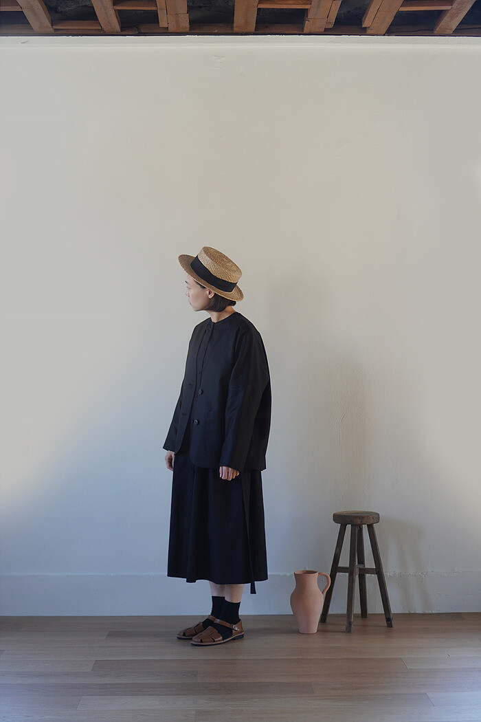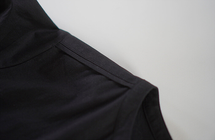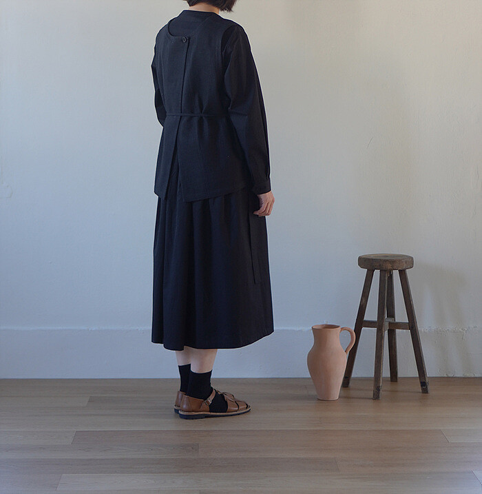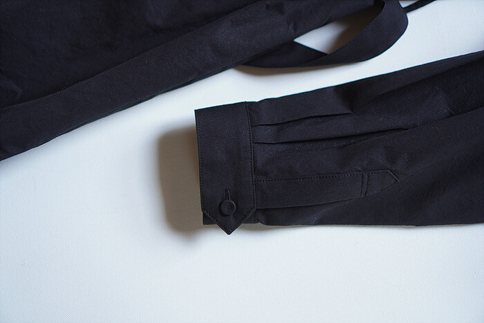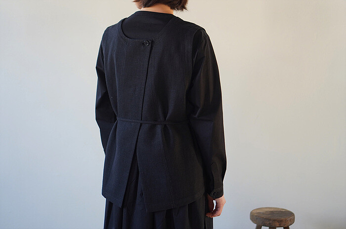 잔잔한 턱 디테일과 단추여밈으로