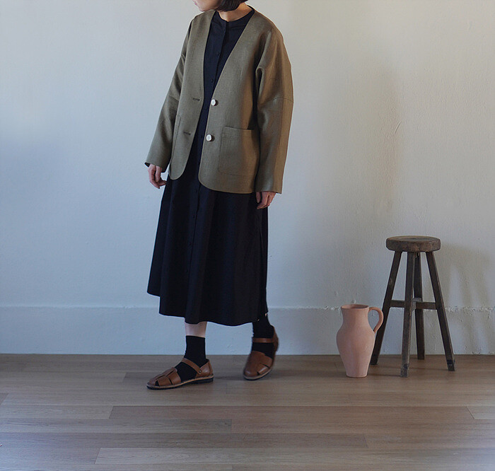 보리자켓, olive color와 함께.