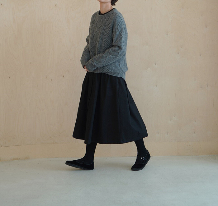 허릿단에 잡힌 많은 플리츠가 A라인의