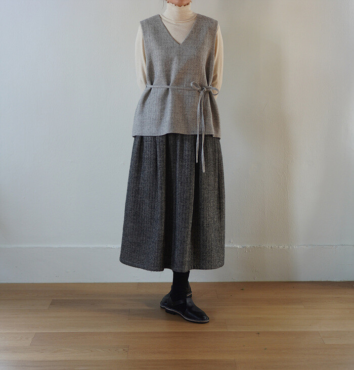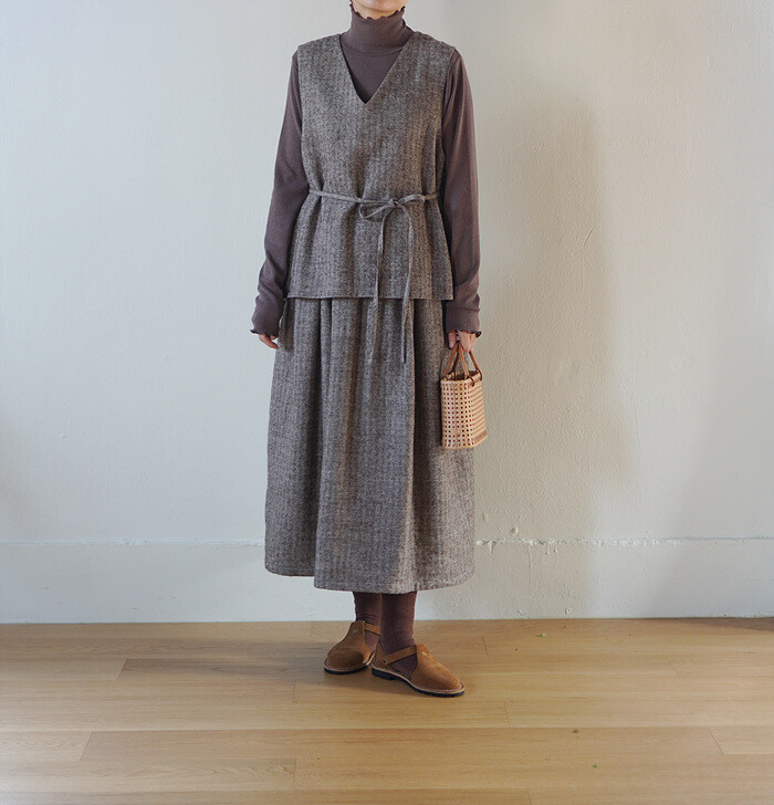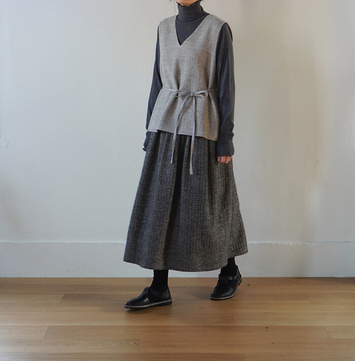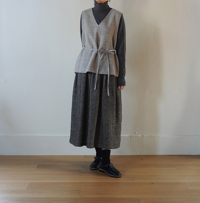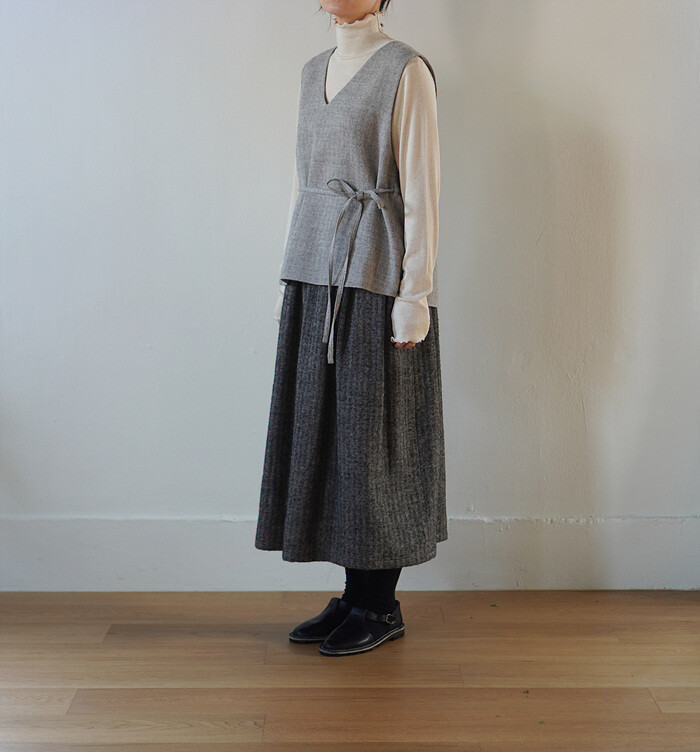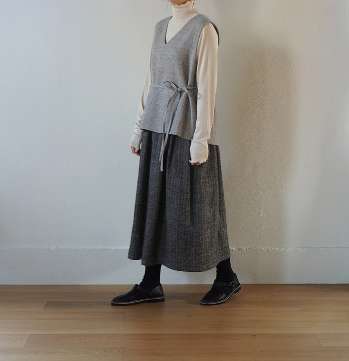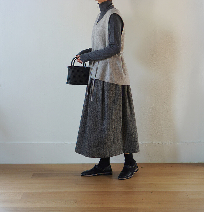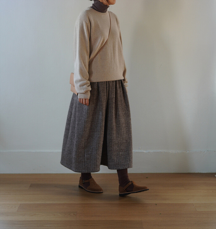 두께감이 있는 울 / 린넨 혼방 소재입니다