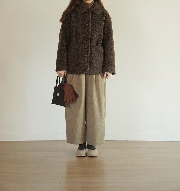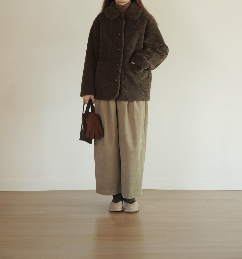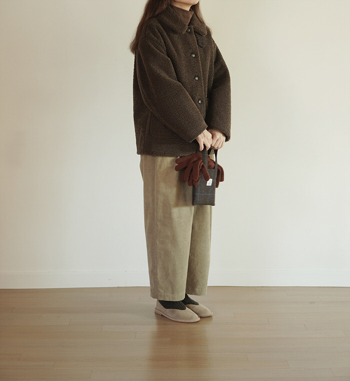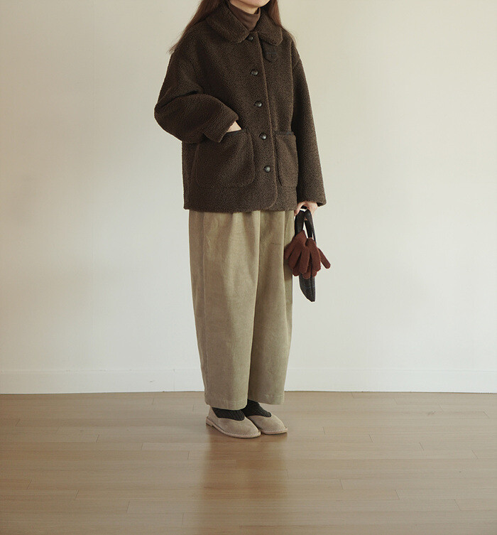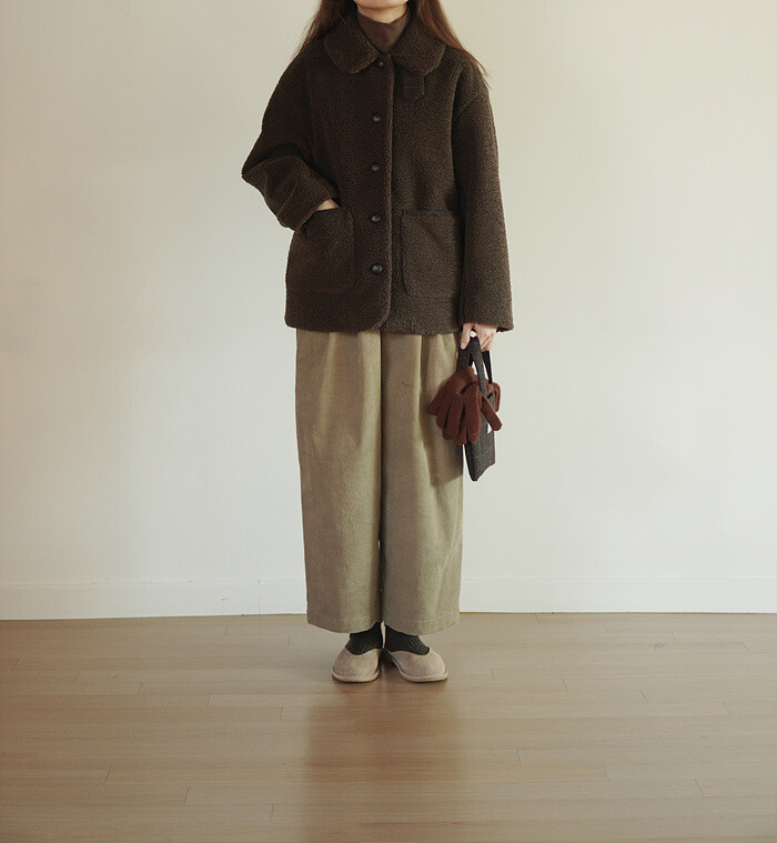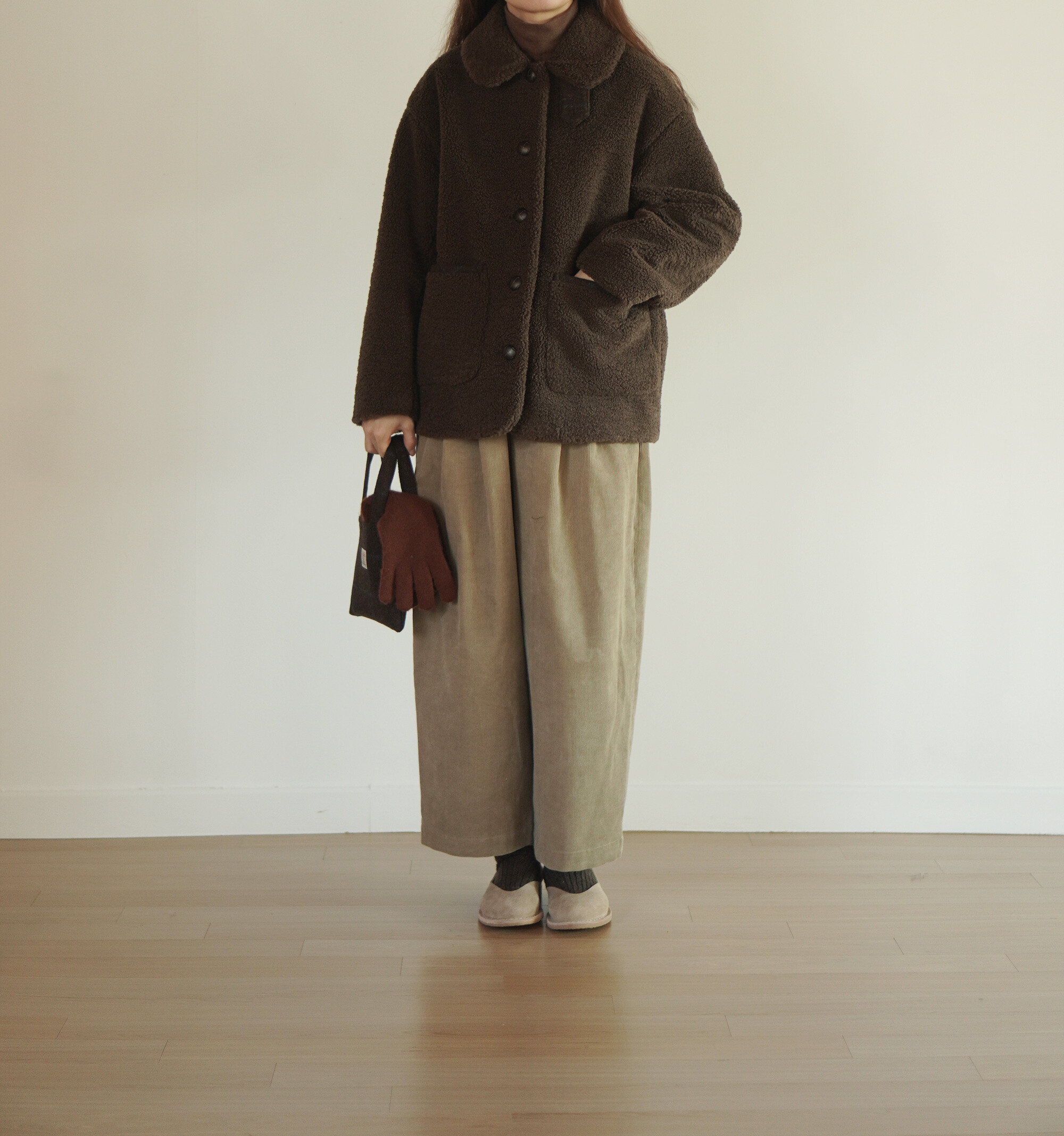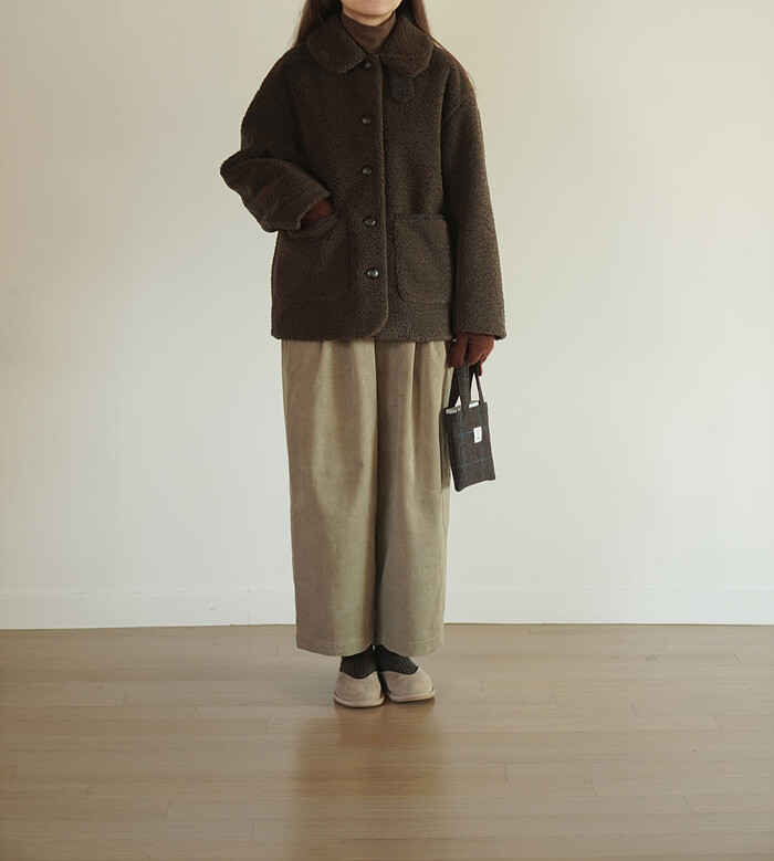 같은 톤의 포켓 코듀로이 팬츠, marron 컬러와 함께.