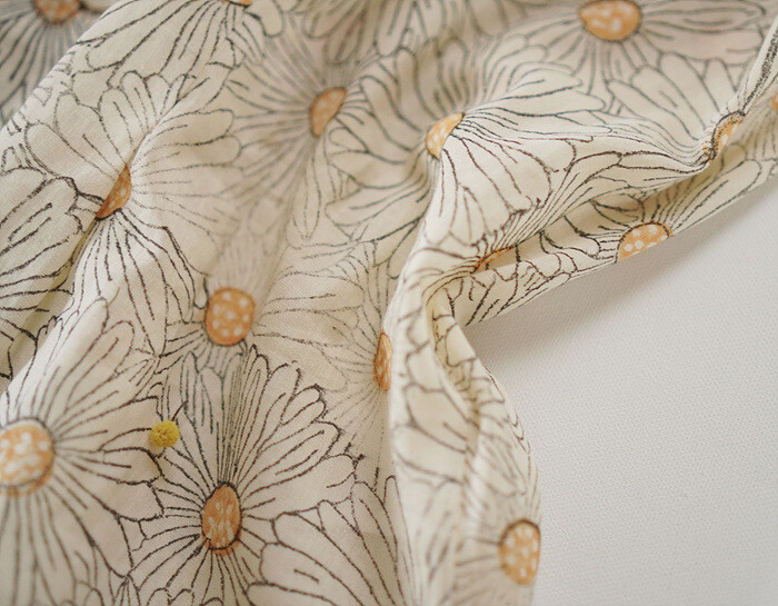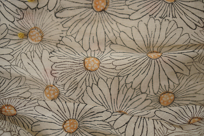 옅은 노란색 바탕에 데이지꽃 패턴이