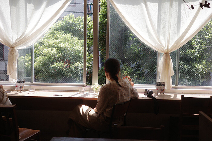 퍼프 소매와 턱 디테일로 페미닌한 무드가 감도는