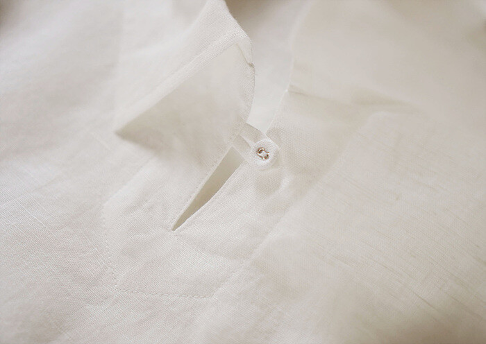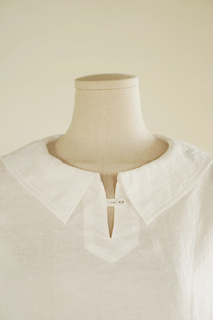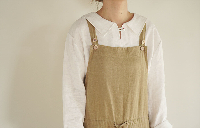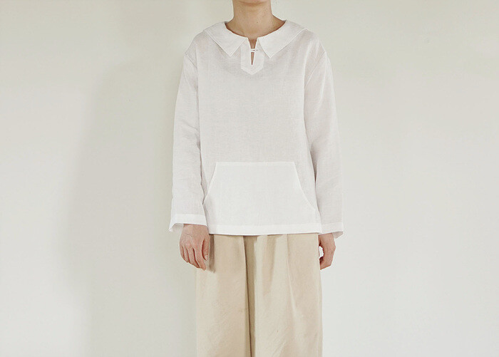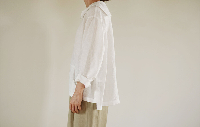앞쪽은 셔츠 카라로, 뒷쪽은 세일러 카라로 연결된 넥라인입니다