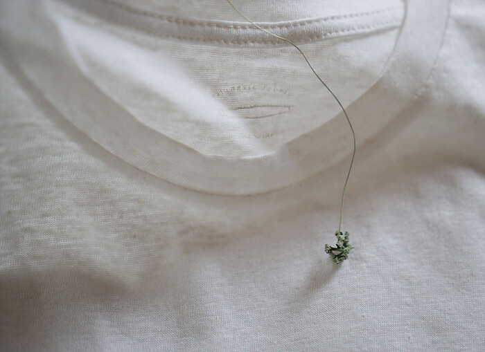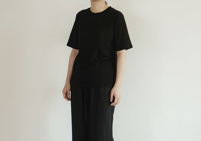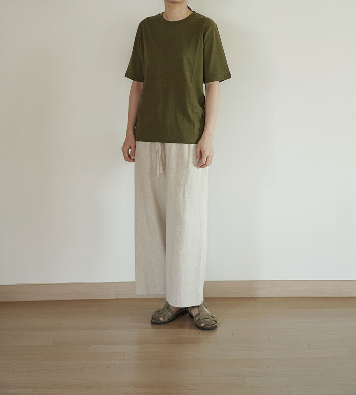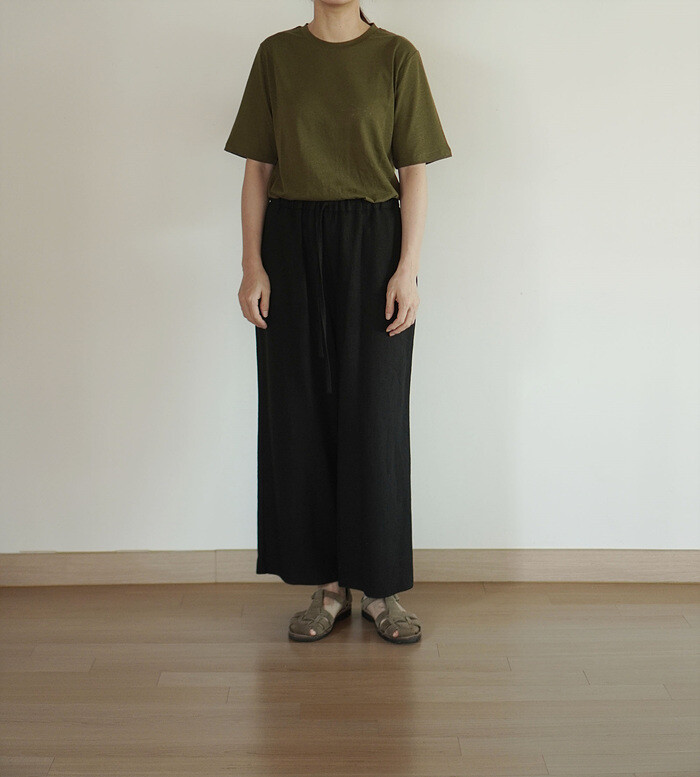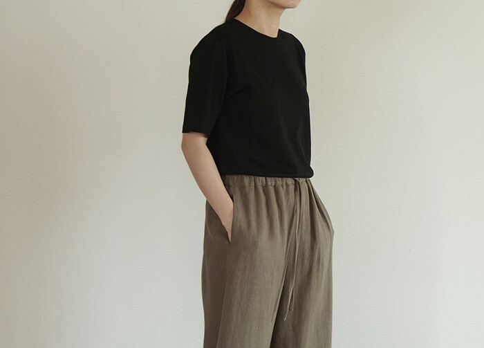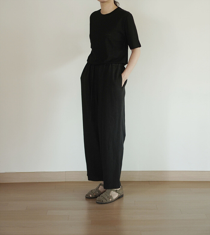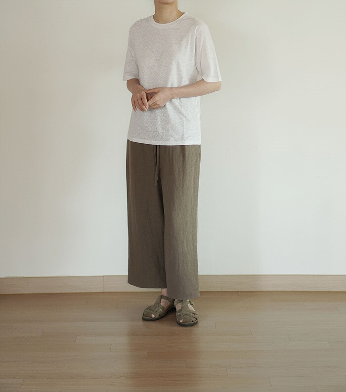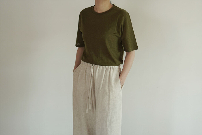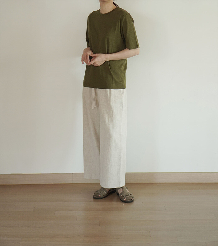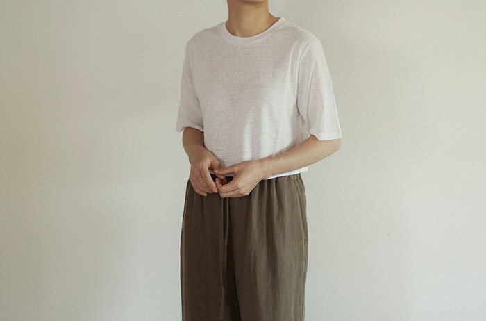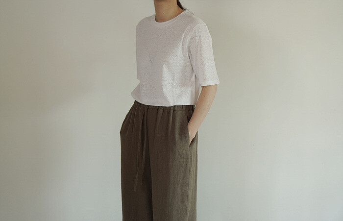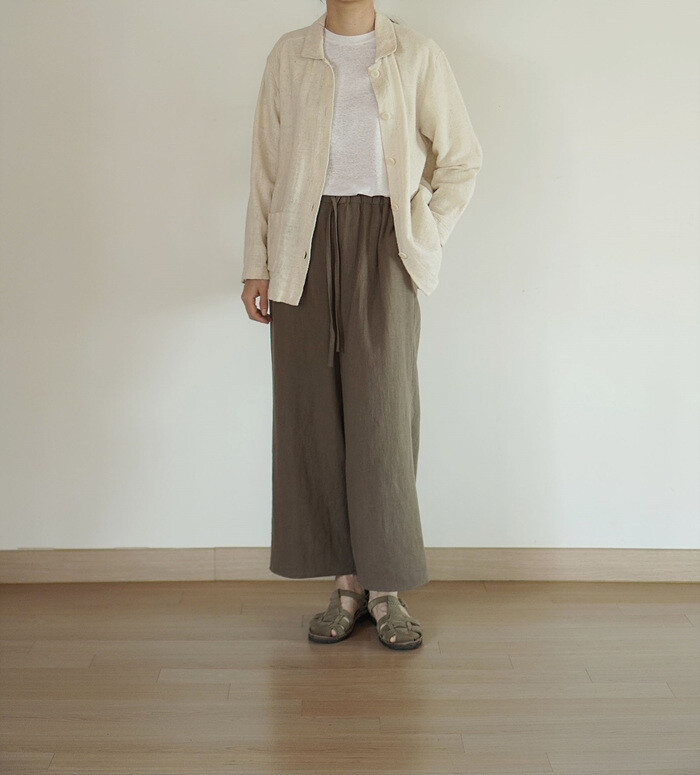 리넨 와이드 팬츠와 토종면 자켓과 함께.