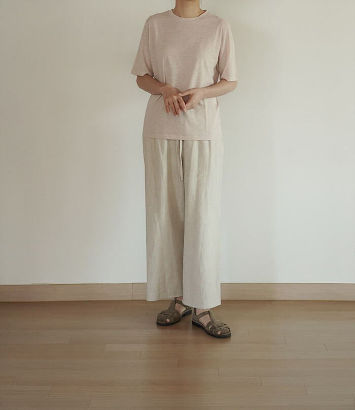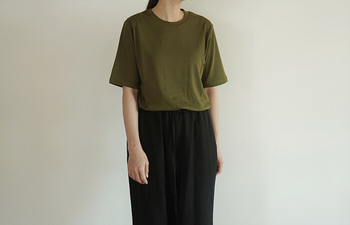 리넨과 코튼이 블렌드 된 저지 소재입니다.
