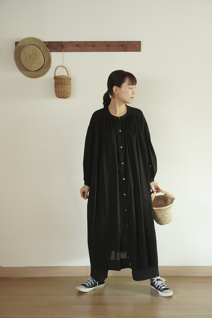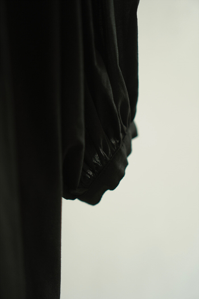 풍성한 셔링 분량이 부하지 않도록 얇은 소재를 사용했습니다