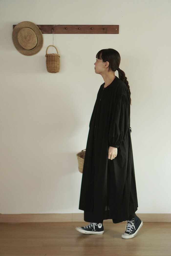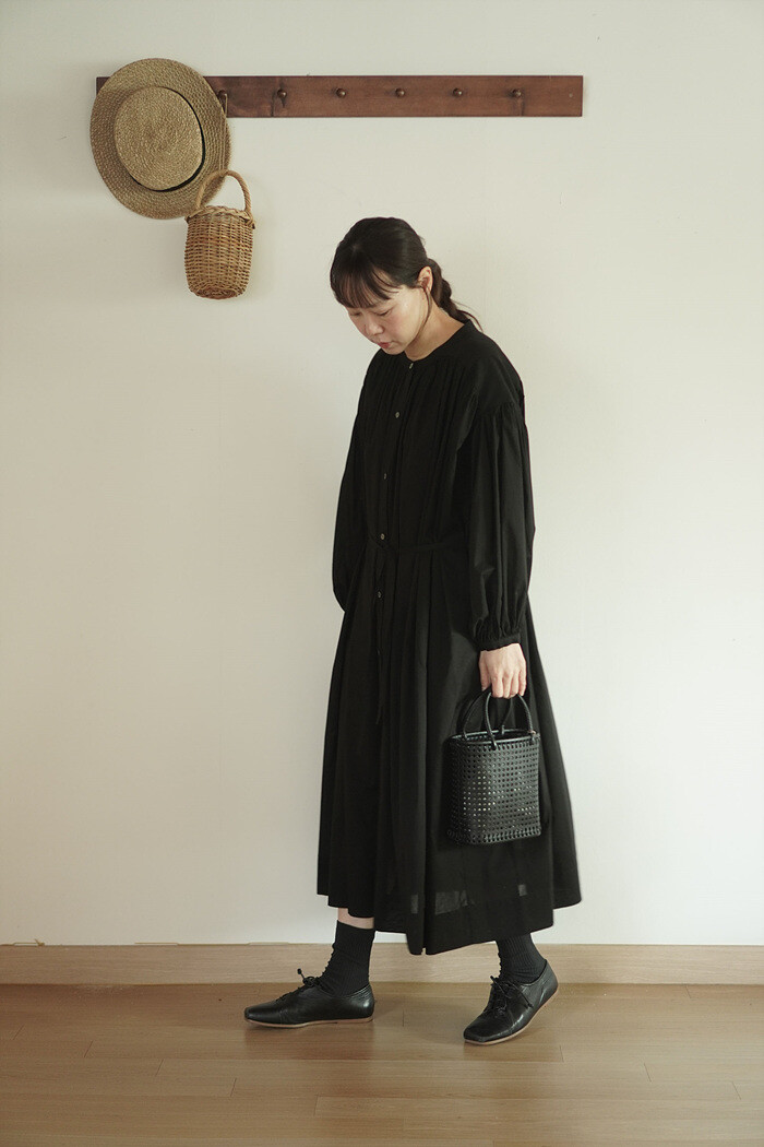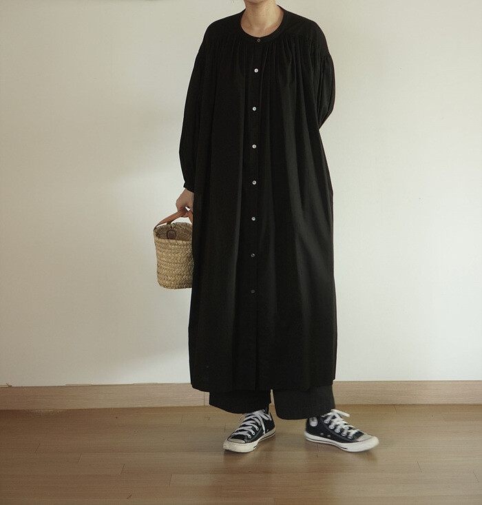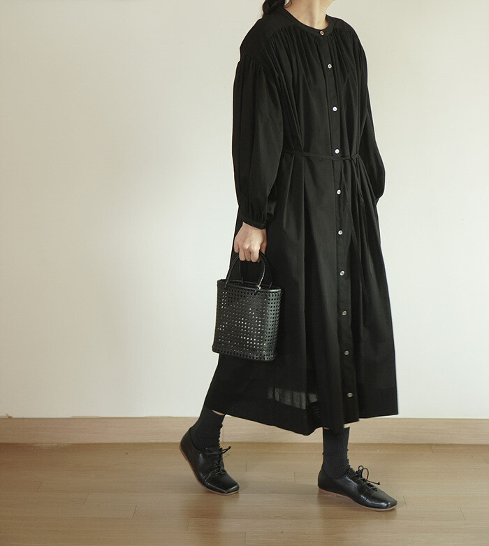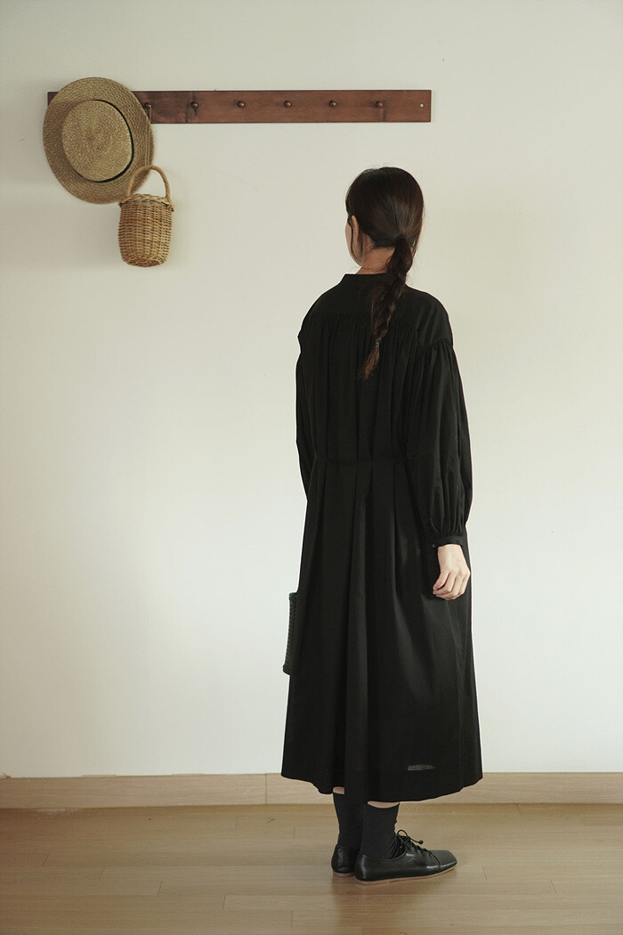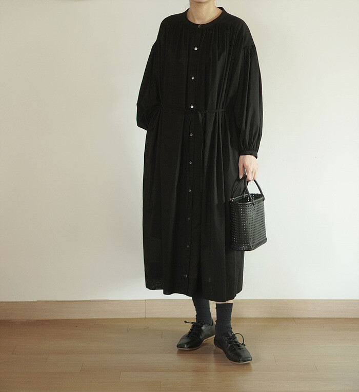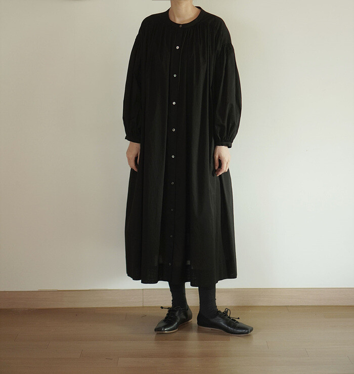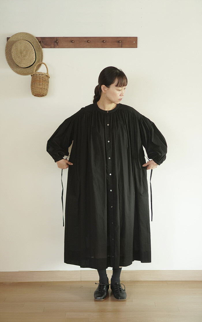 풍성한 분량의 개더가 잡힌 원피스입니다.